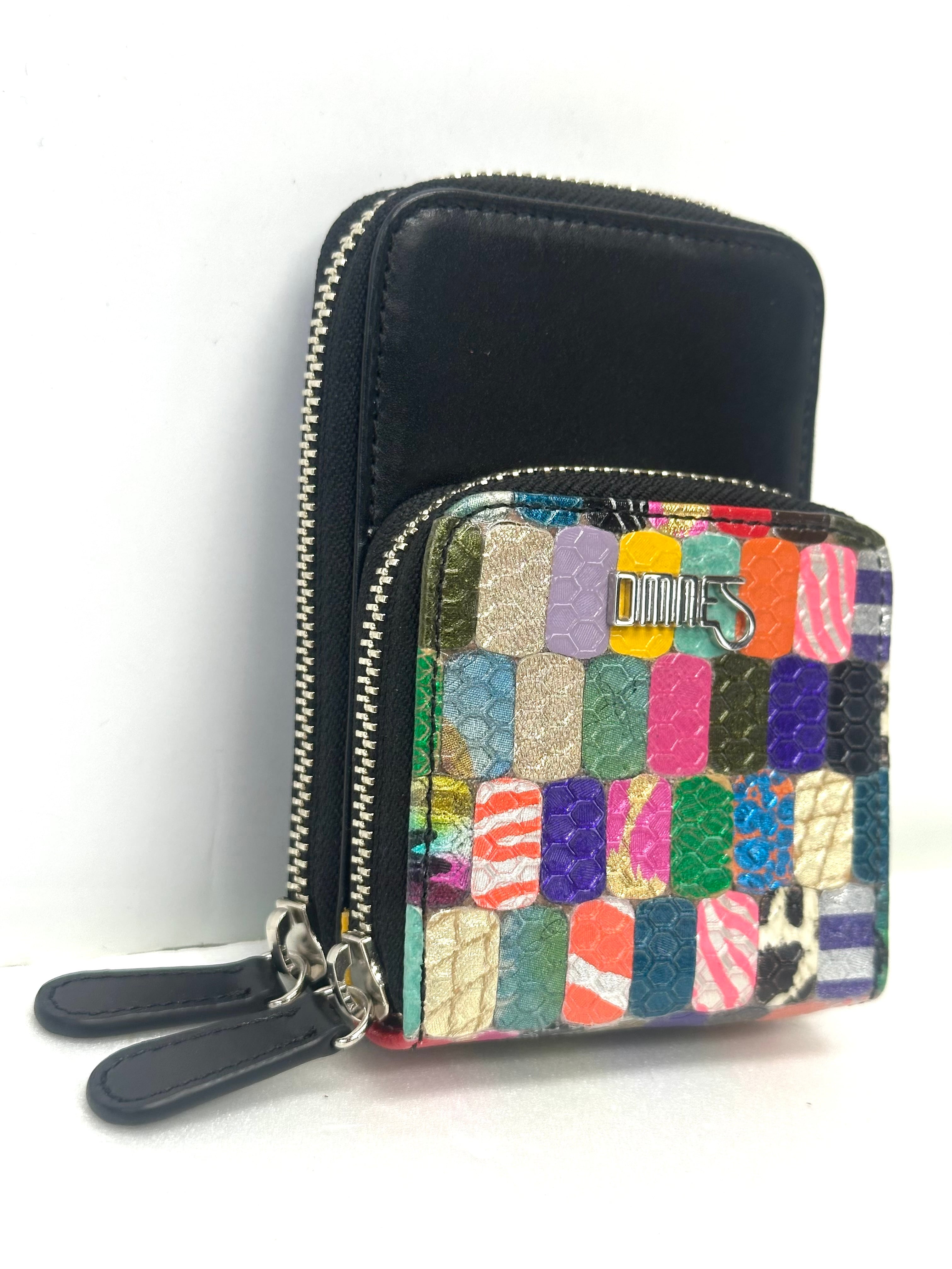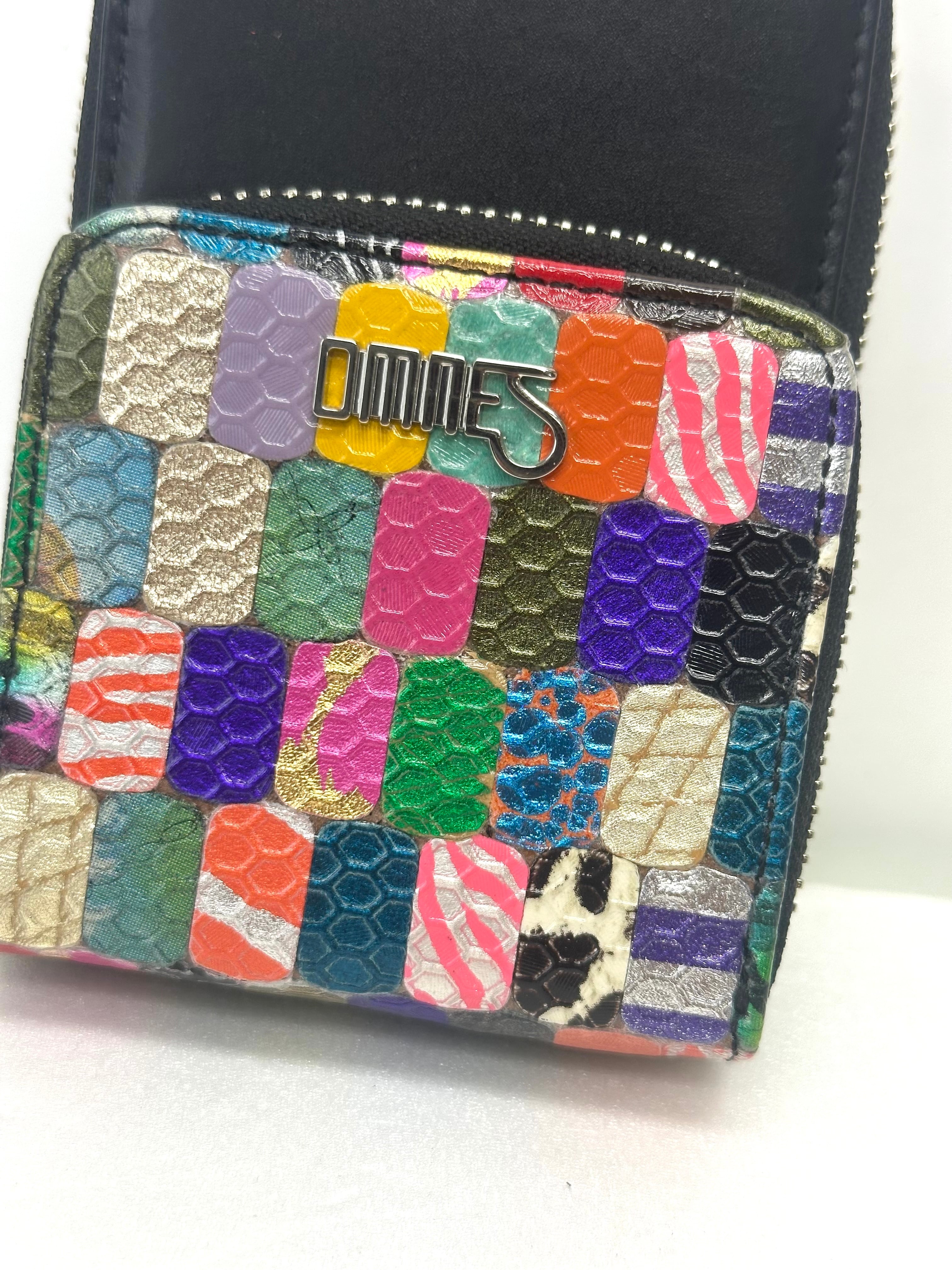 小銭スペース革:鹿革・牛革・豚革・羊革のコラージュ+エナメルフィルム+型押し