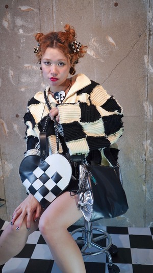 アミュハートのチェッカー部分を柄としてプリントしたレザーを使いマルシェバッグ型のバッグ、Packable(パッカブル)を作りました。