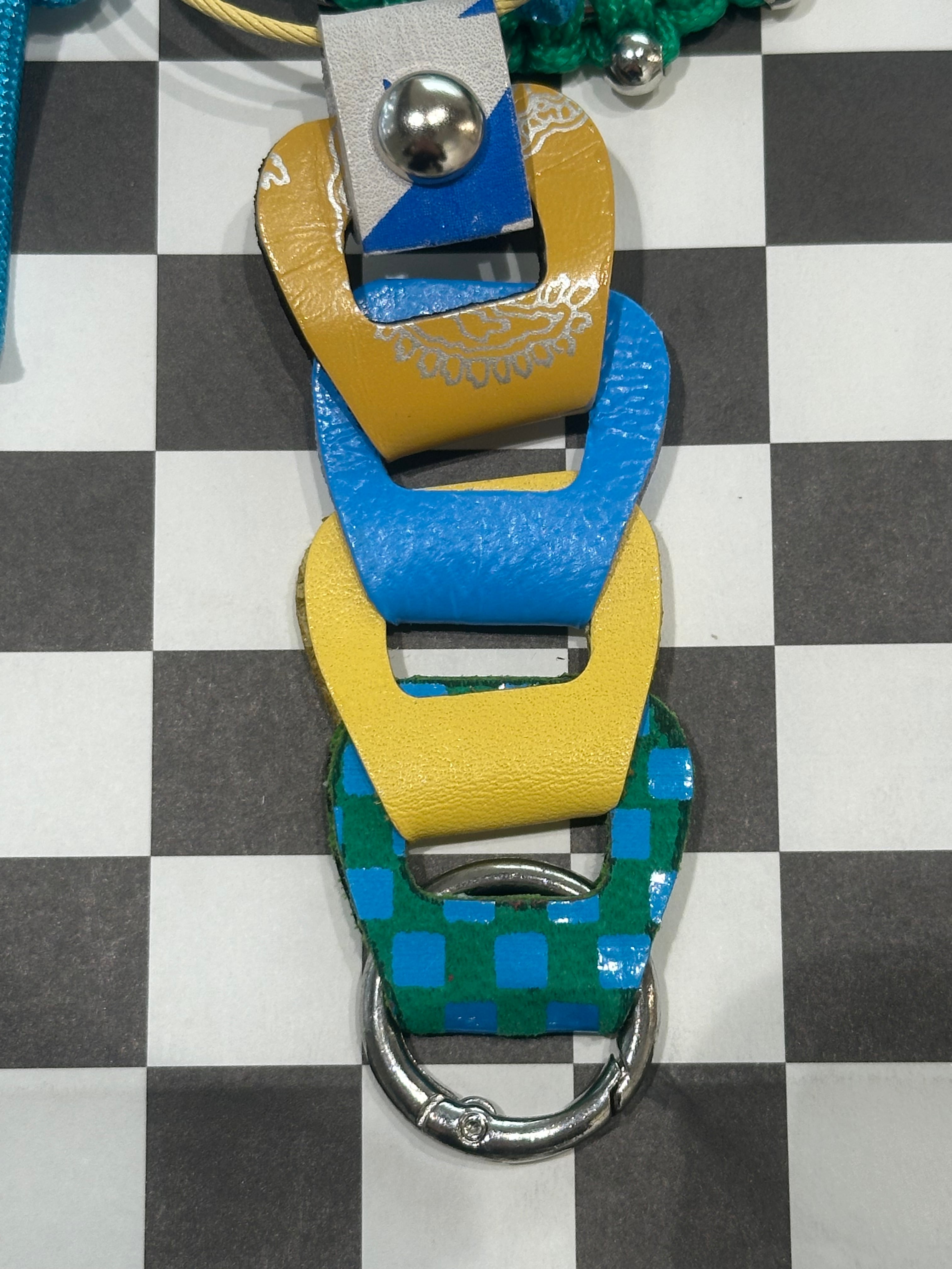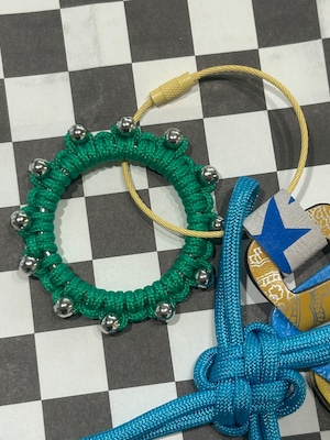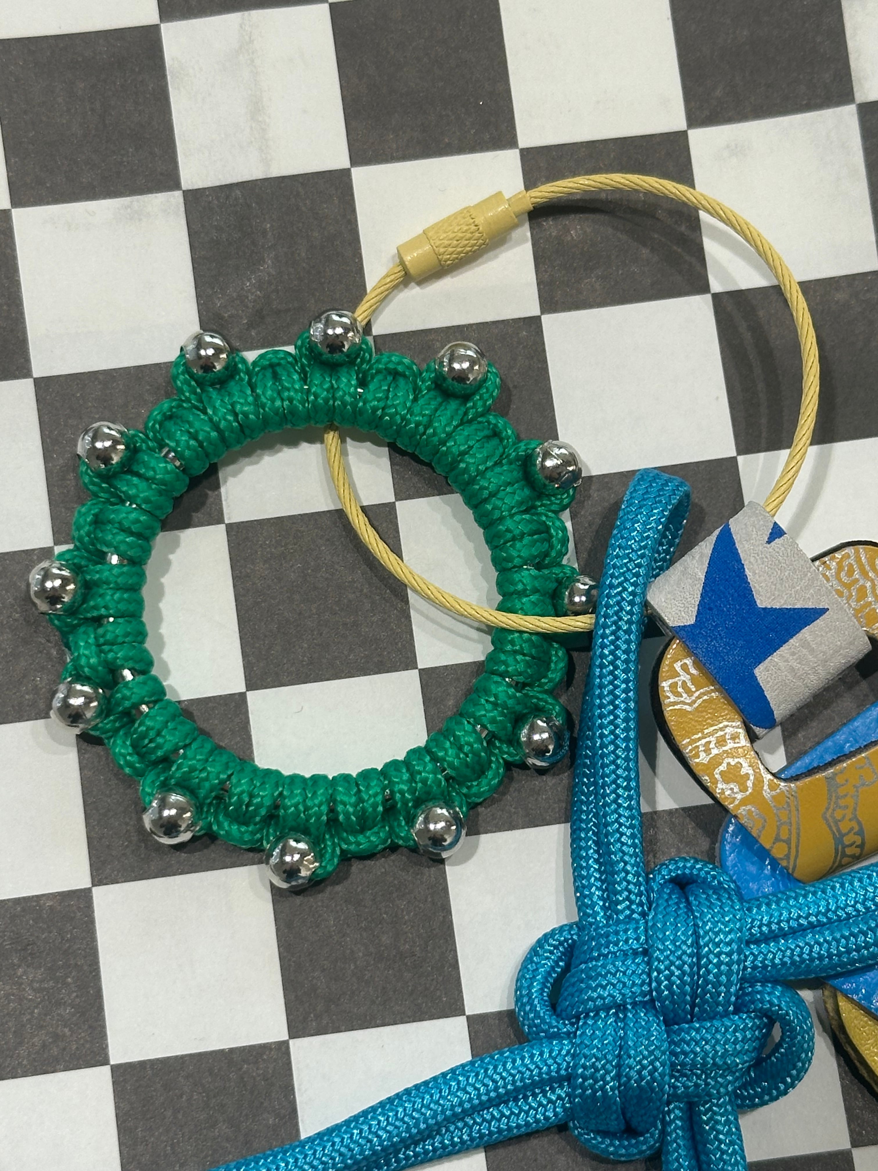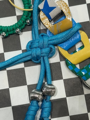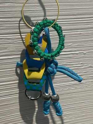 全てオリジナルで制作したアクリルパーツやパラコードのチャーム、レザーパーツを組み合わせたキーリング。