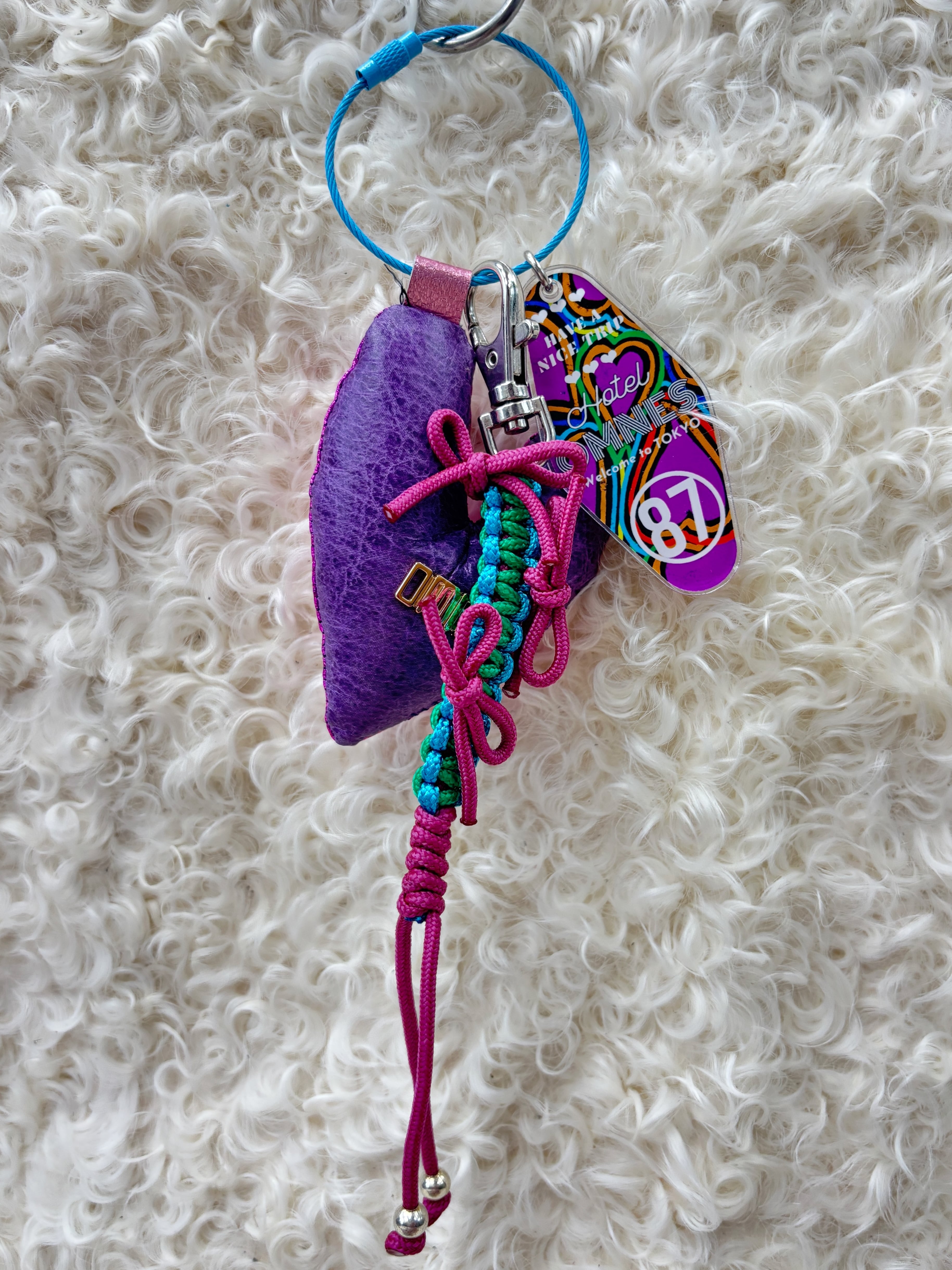 全てオリジナルで制作したアクリルパーツやパラコードのチャーム、レザーパーツを組み合わせたキーリング。