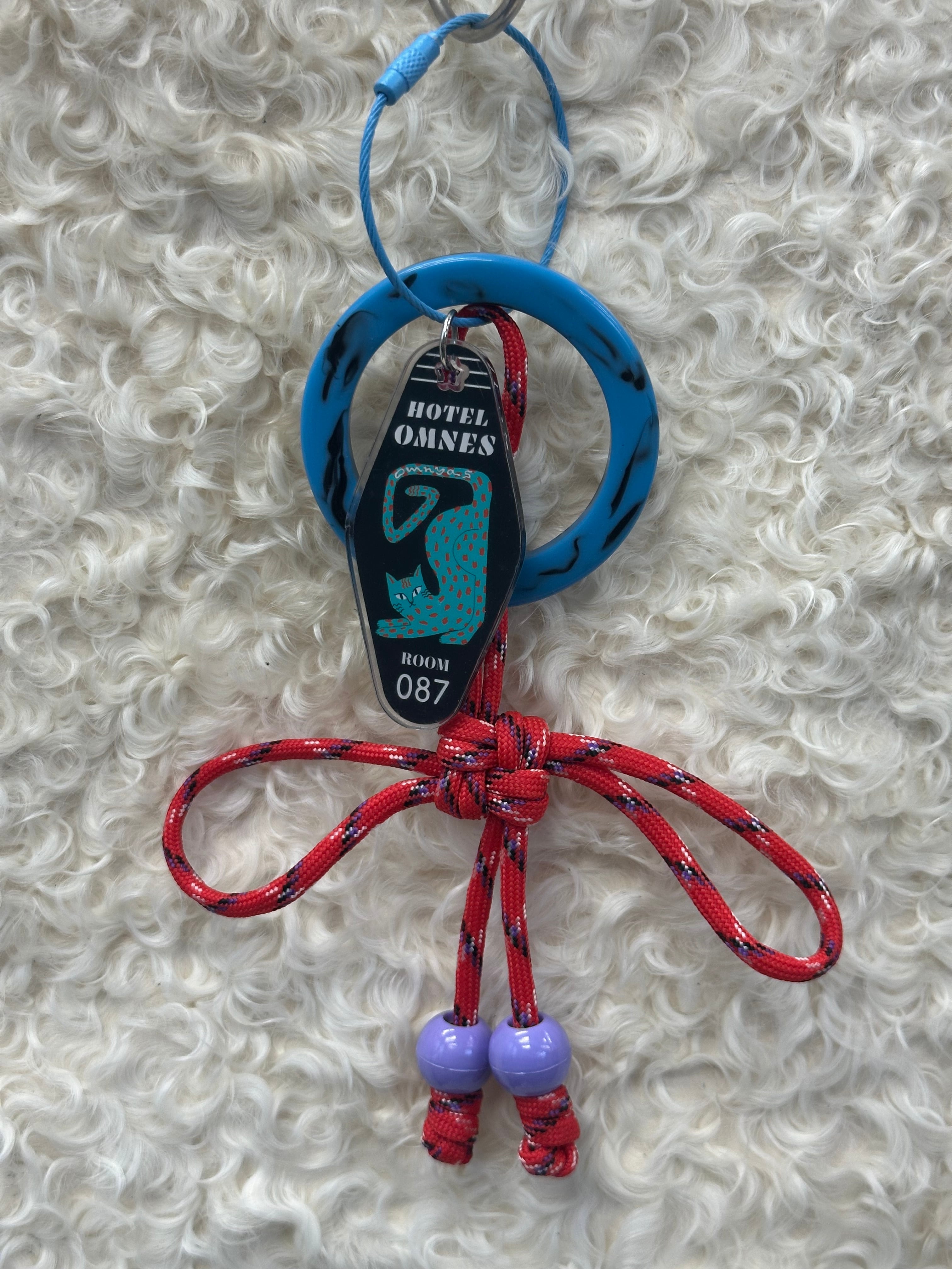 全てオリジナルで制作したアクリルパーツやパラコードのチャーム、レザーパーツを組み合わせたキーリング。
