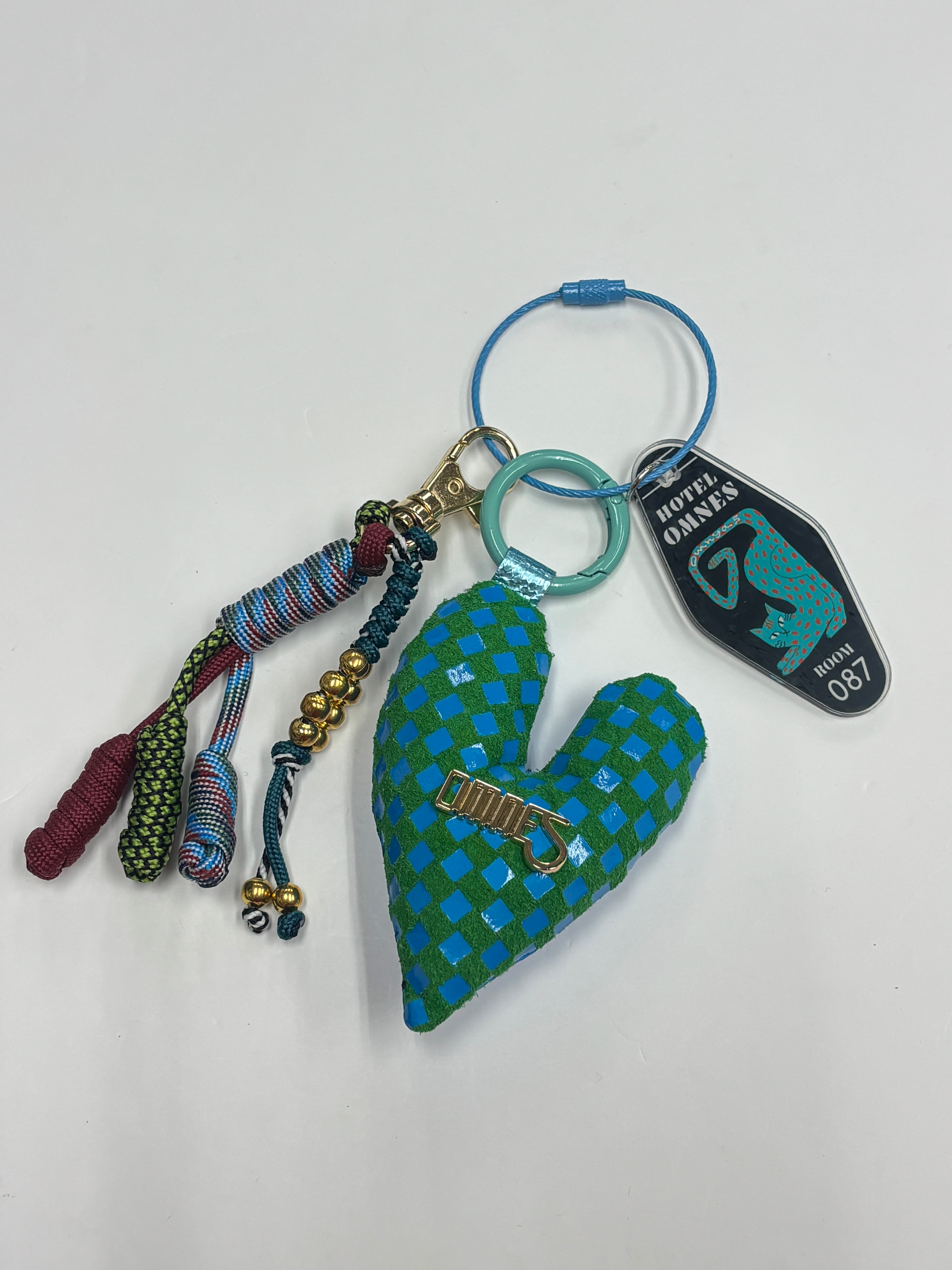 全てオリジナルで制作したアクリルパーツやパラコードのチャーム、レザーパーツを組み合わせたキーリング。
