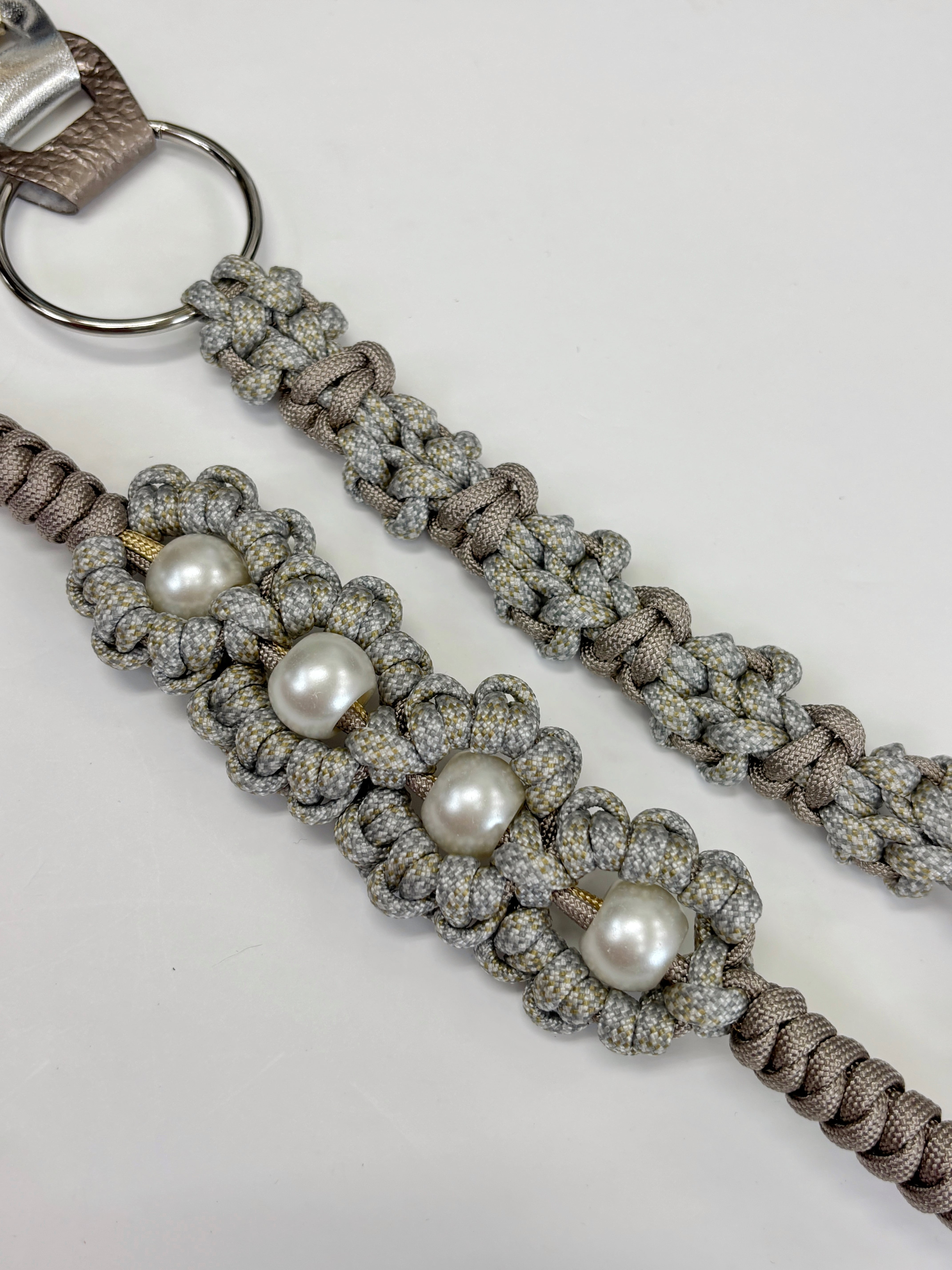 編み上げたパラコードとバッグを作る際のカラフルなレザーの切れ端を使って一点一点ハンドメイドで作られたスペシャルなストラップです。