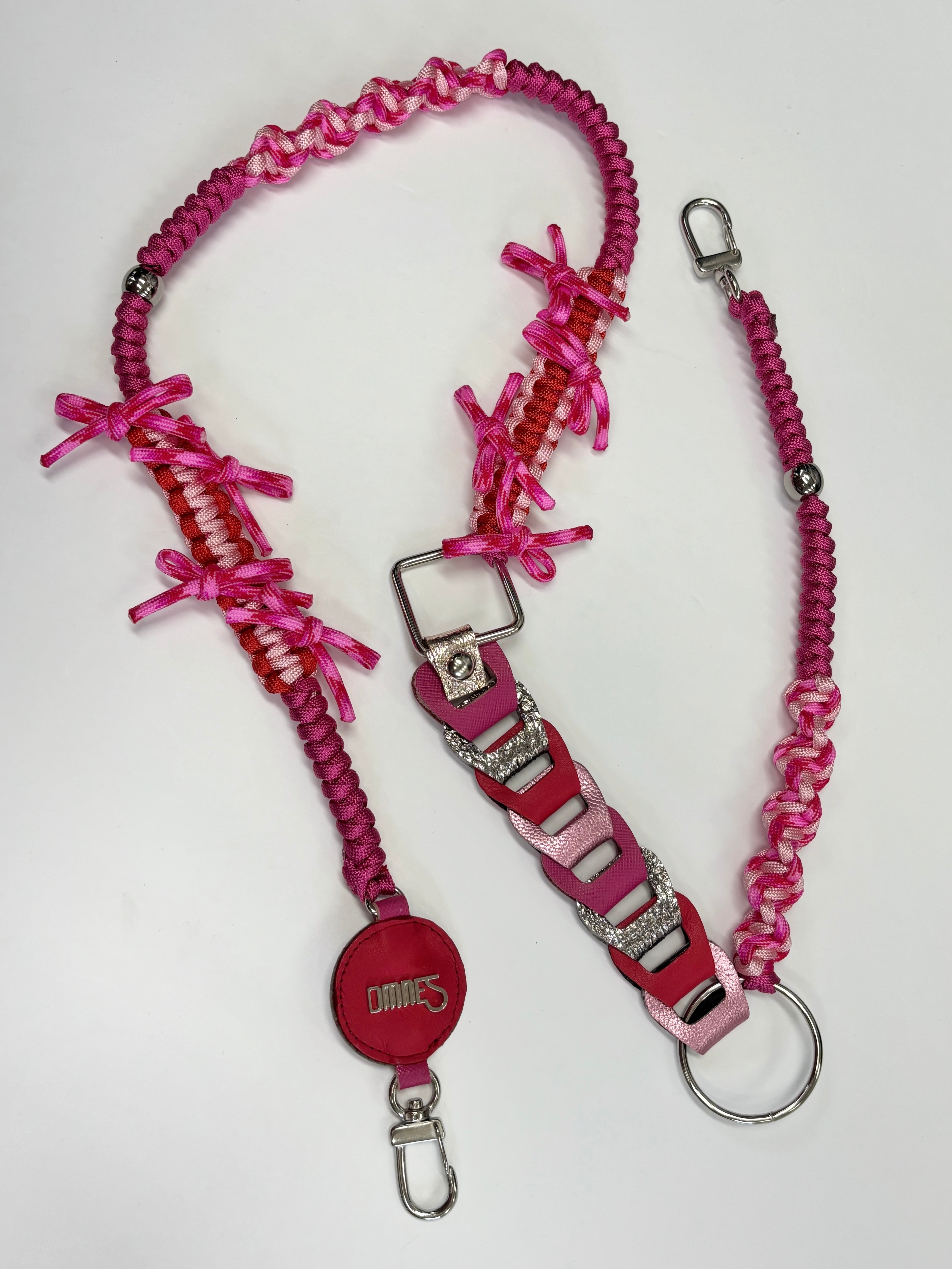 編み上げたパラコードとバッグを作る際のカラフルなレザーの切れ端を使って一点一点ハンドメイドで作られたスペシャルなストラップです。
