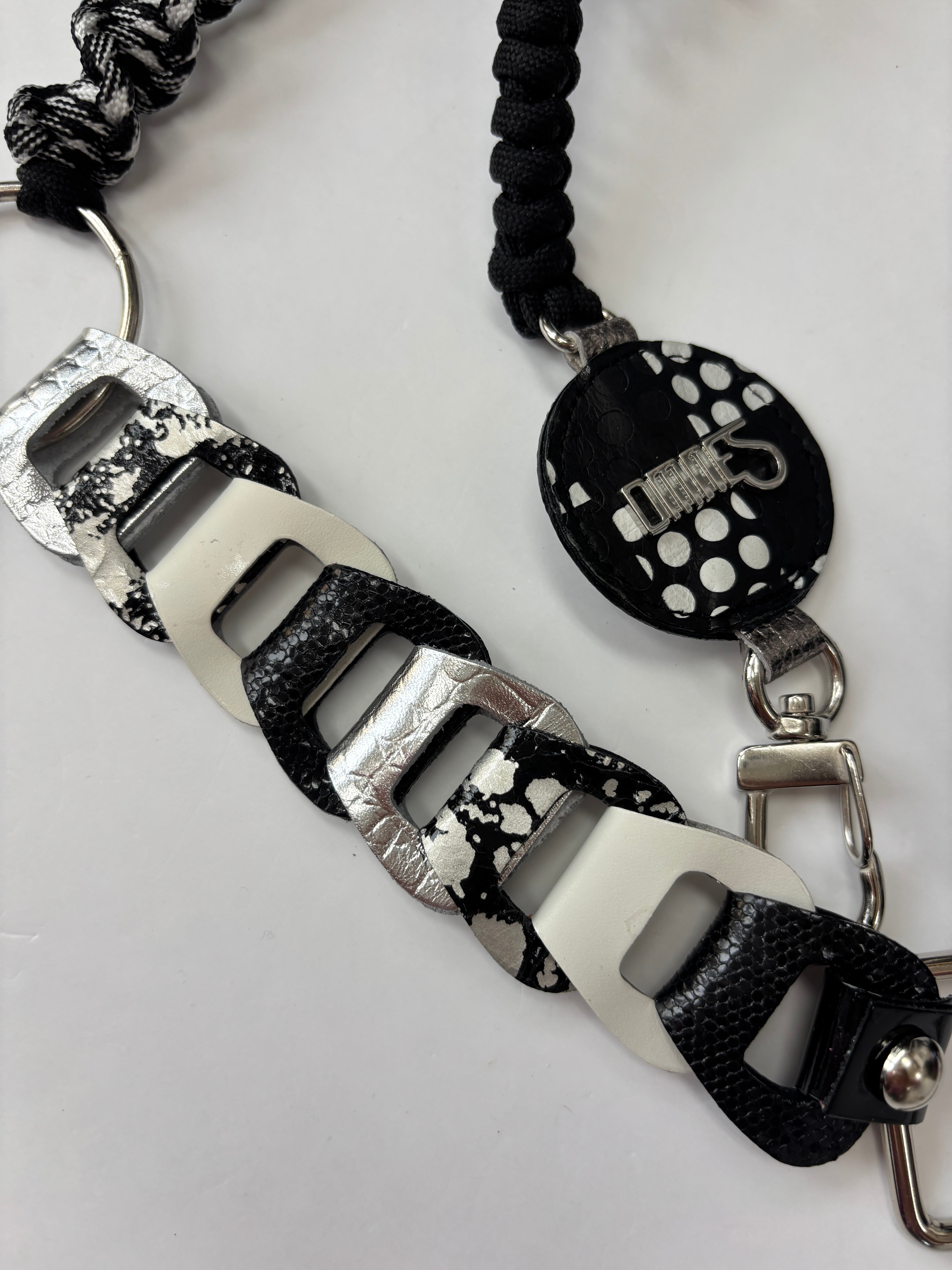 編み上げたパラコードとバッグを作る際のカラフルなレザーの切れ端を使って一点一点ハンドメイドで作られたスペシャルなストラップです。