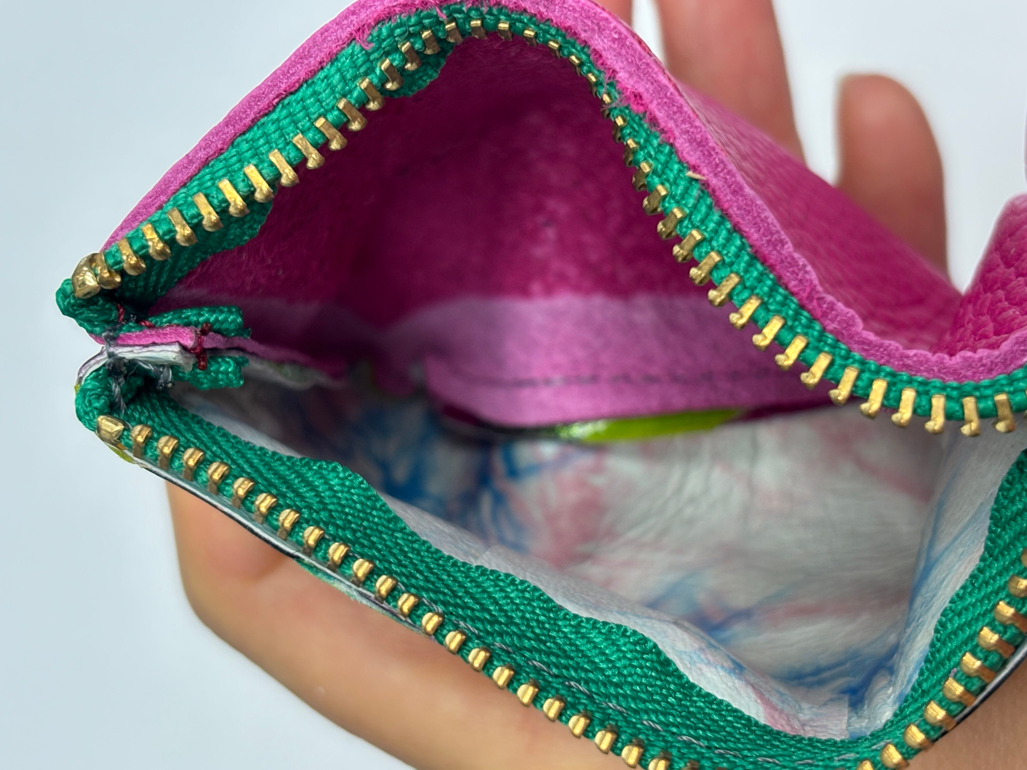ファスナータイプのミニポーチはカードや小銭、アクセサリーの収納にぴったりなコンパクトサイズ!ミニウォレットに入りきらなかったカードや小銭を入れてセットで持つのもオススメ。