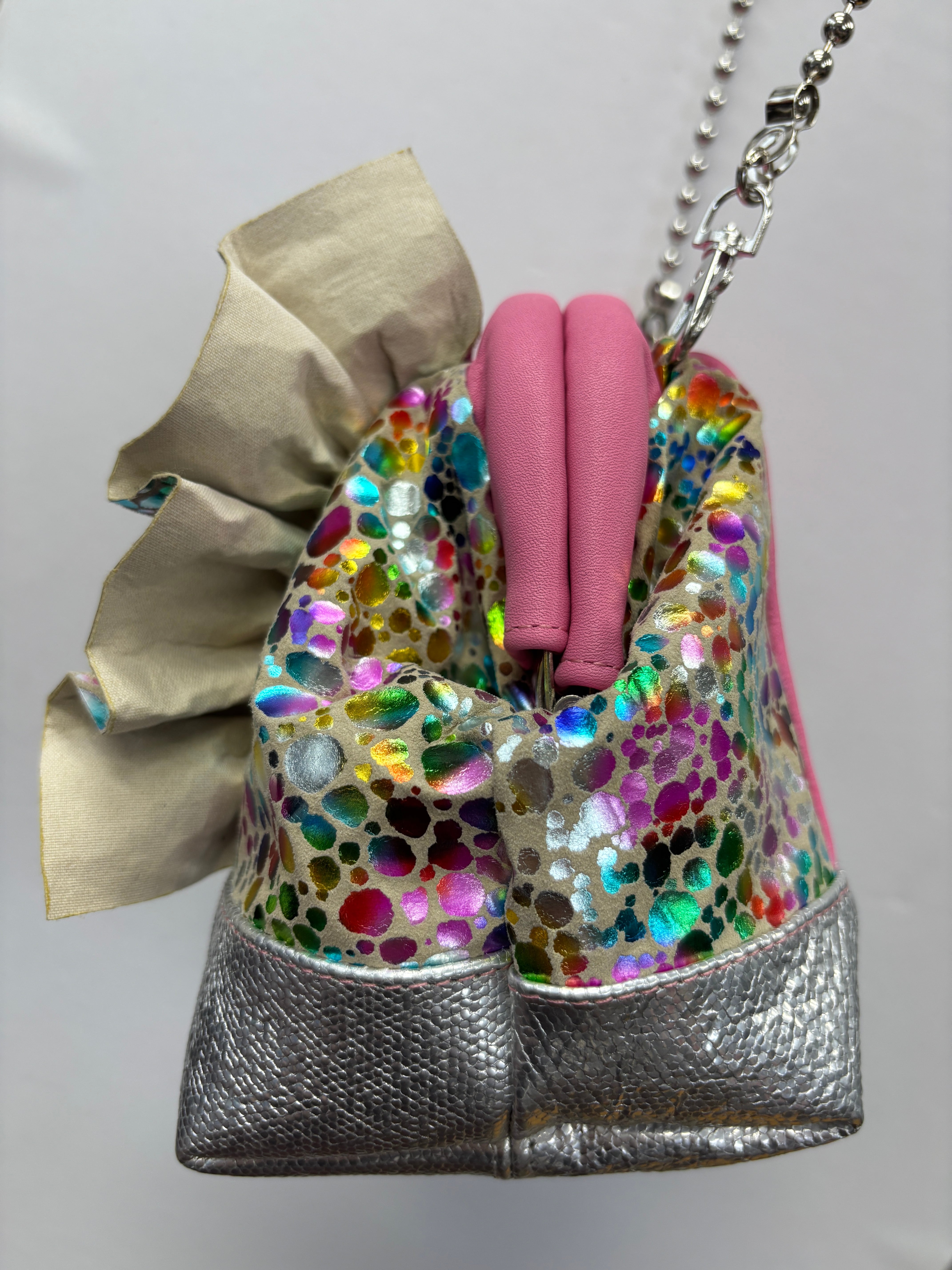 サイド素材:鹿革+絞り染め+フィルム+箔