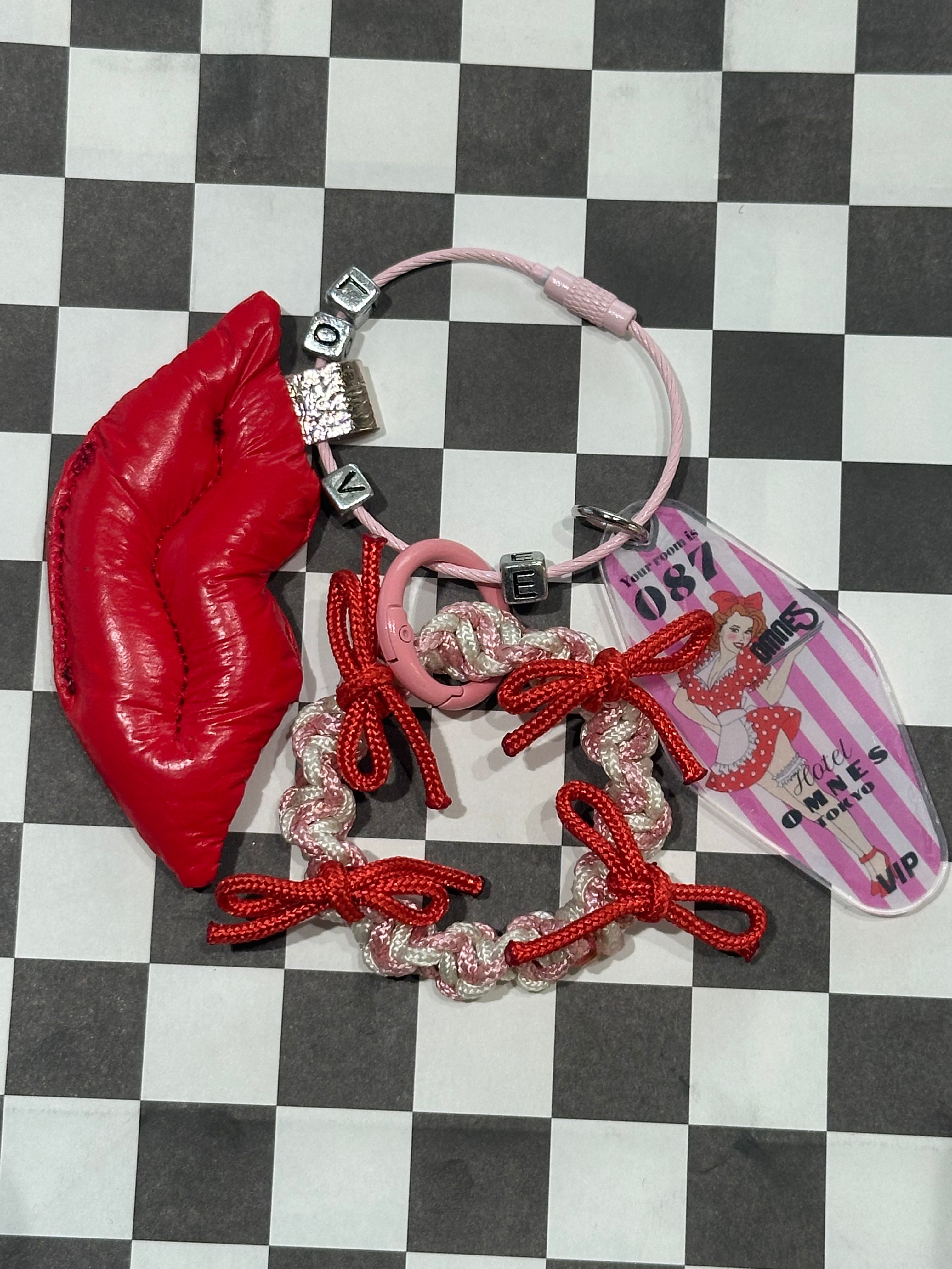 全てオリジナルで制作したアクリルパーツやパラコードのチャーム、レザーパーツを組み合わせたキーリング。