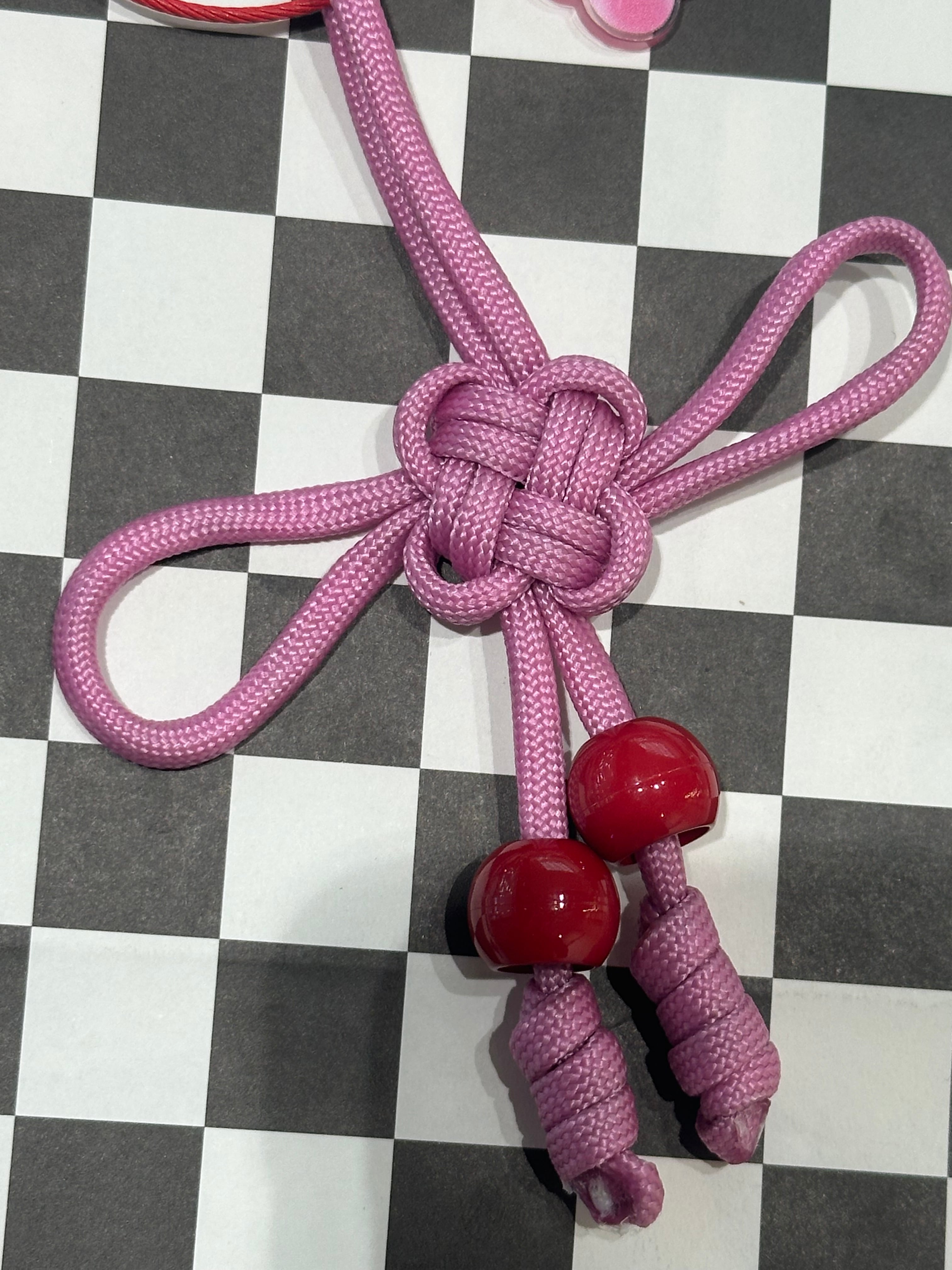 全てオリジナルで制作したアクリルパーツやパラコードのチャーム、レザーパーツを組み合わせたキーリング。