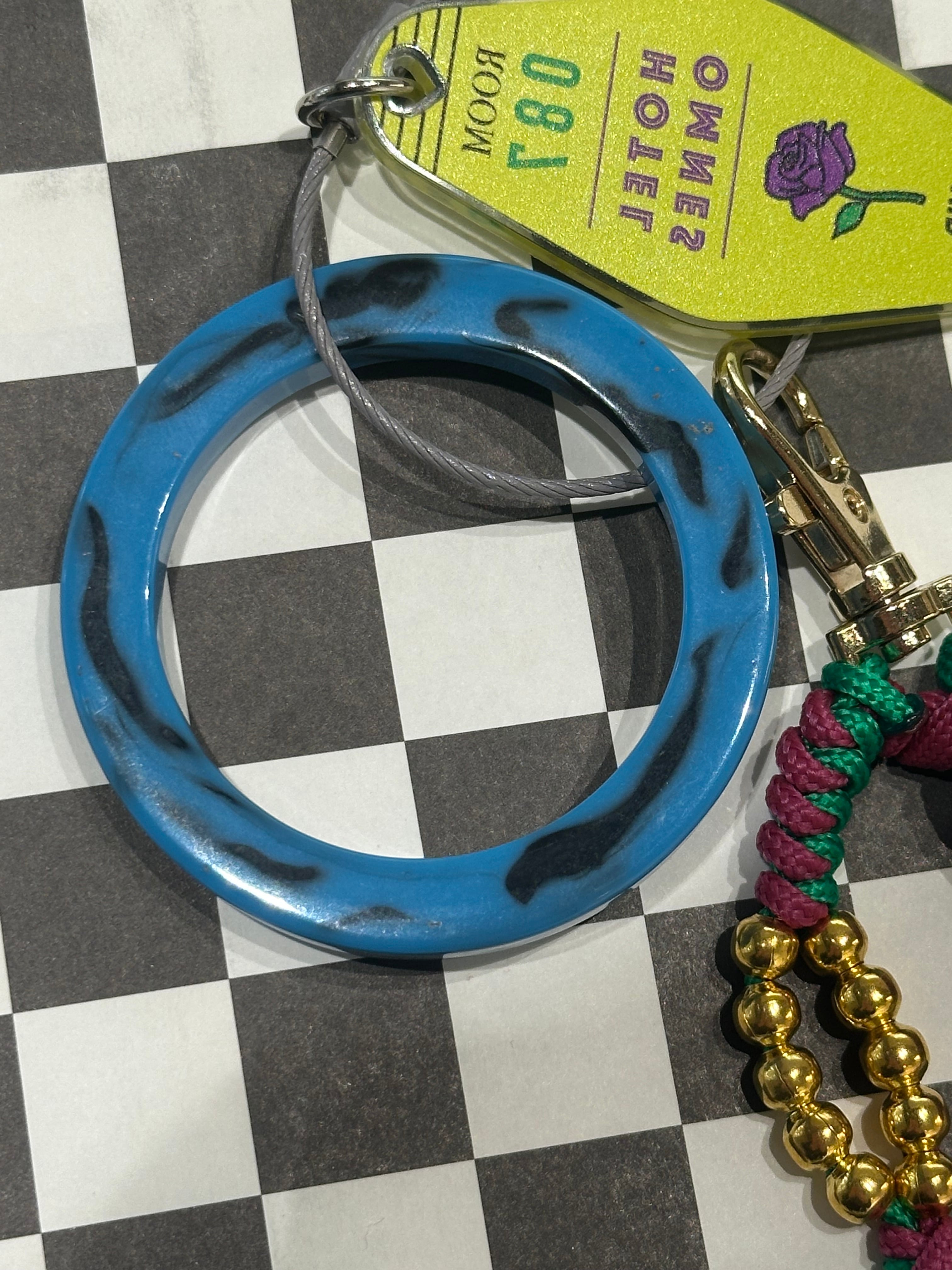 全てオリジナルで制作したアクリルパーツやパラコードのチャーム、レザーパーツを組み合わせたキーリング。