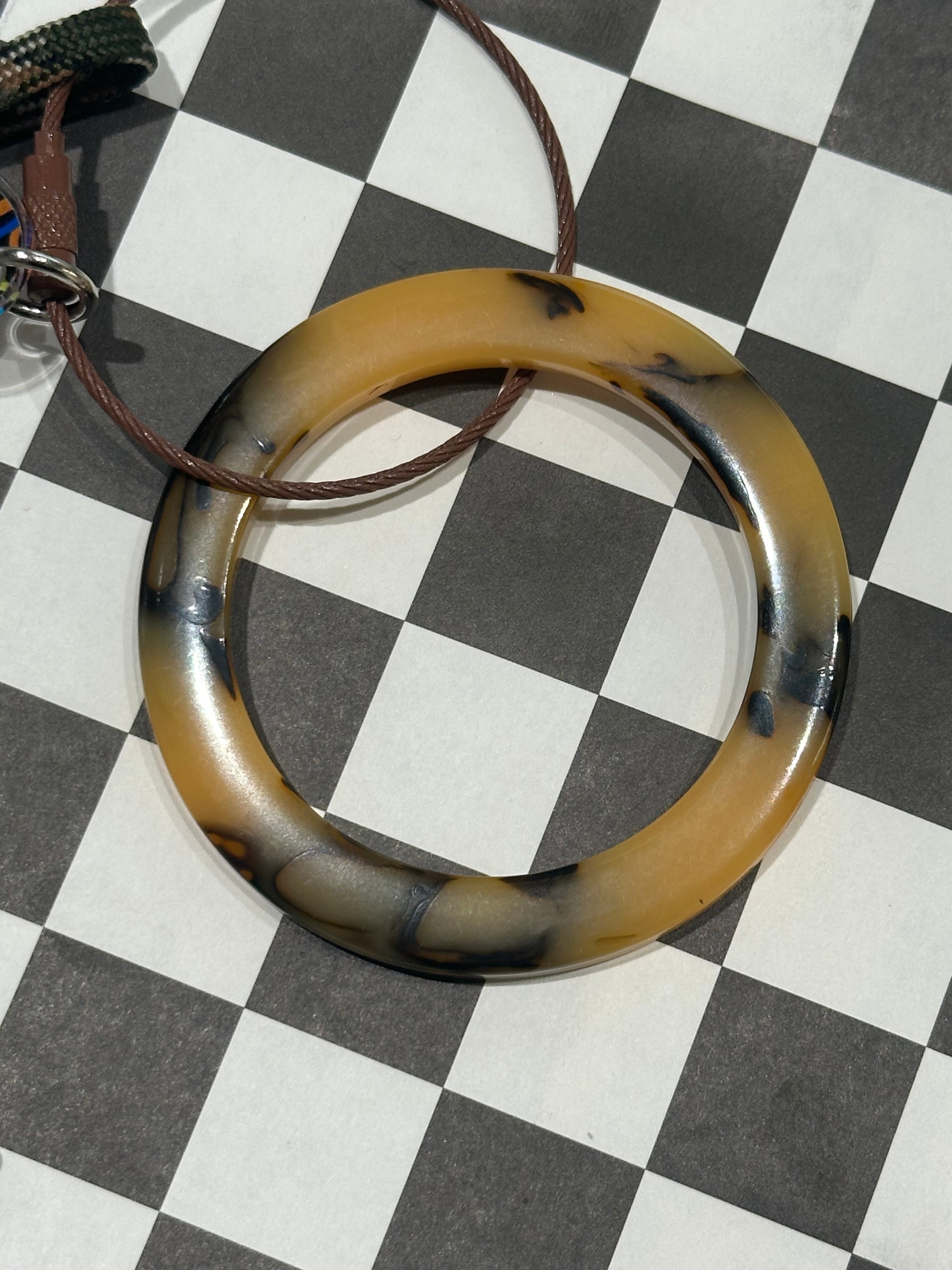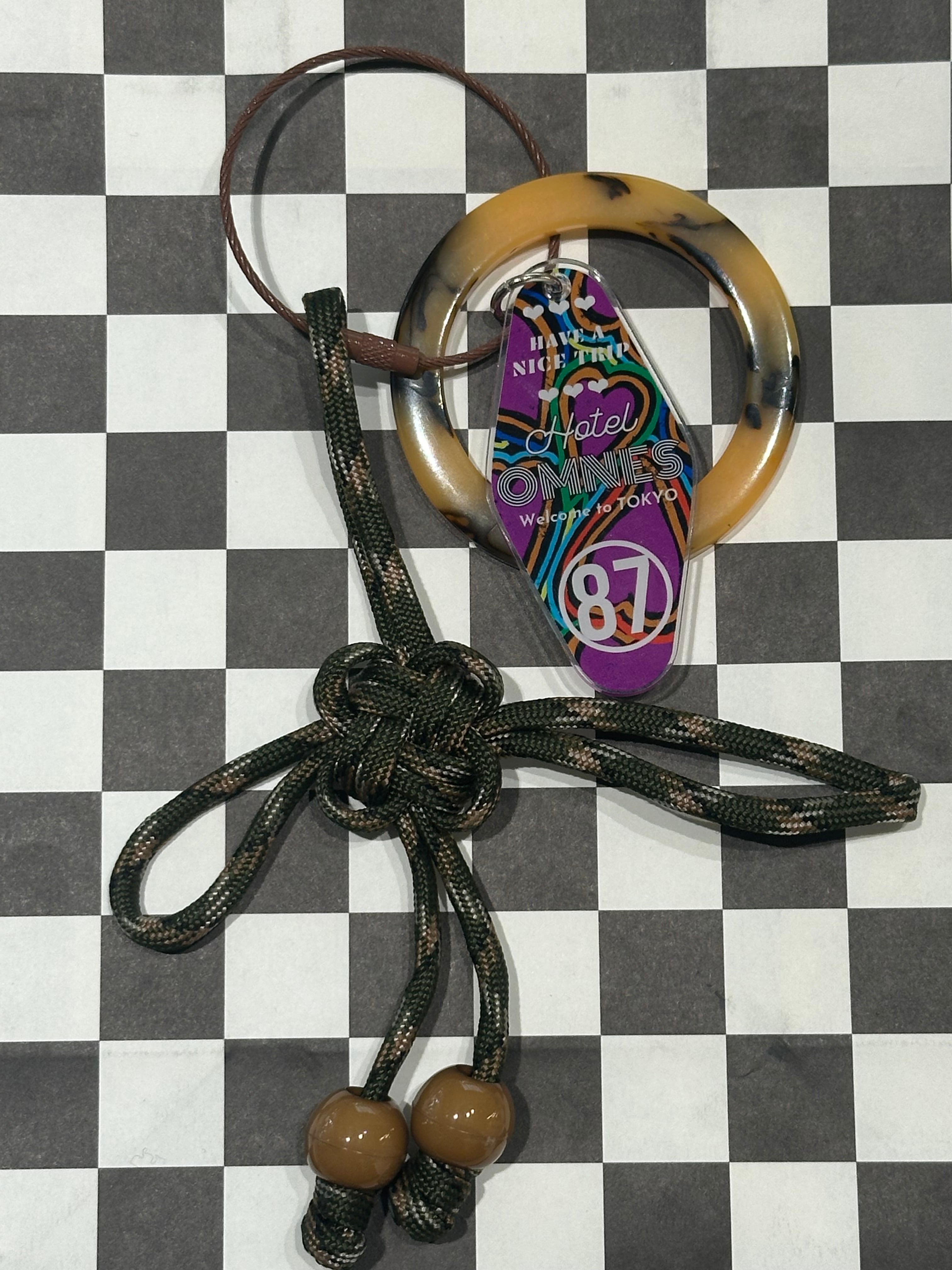 全てオリジナルで制作したアクリルパーツやパラコードのチャーム、レザーパーツを組み合わせたキーリング。
