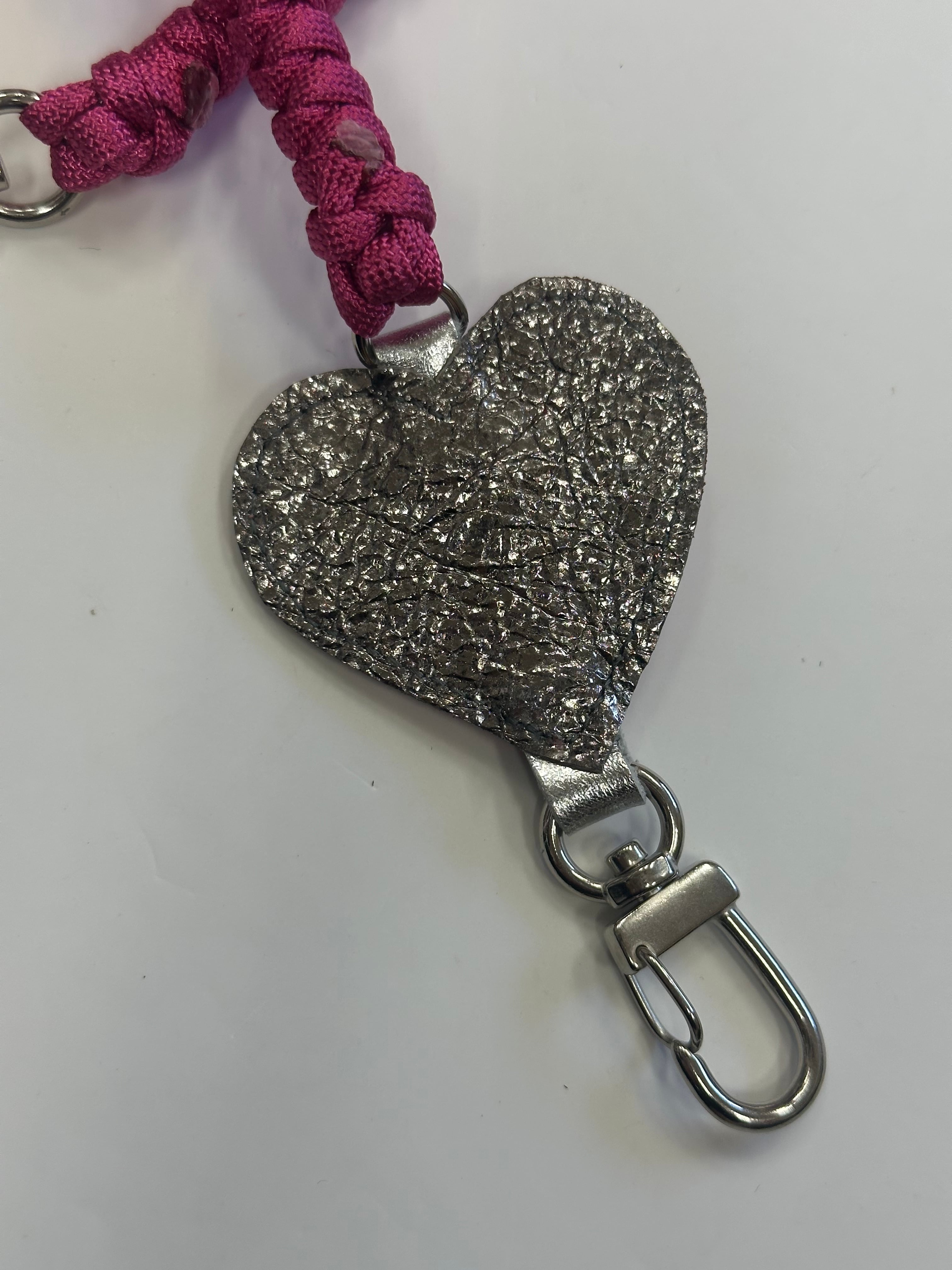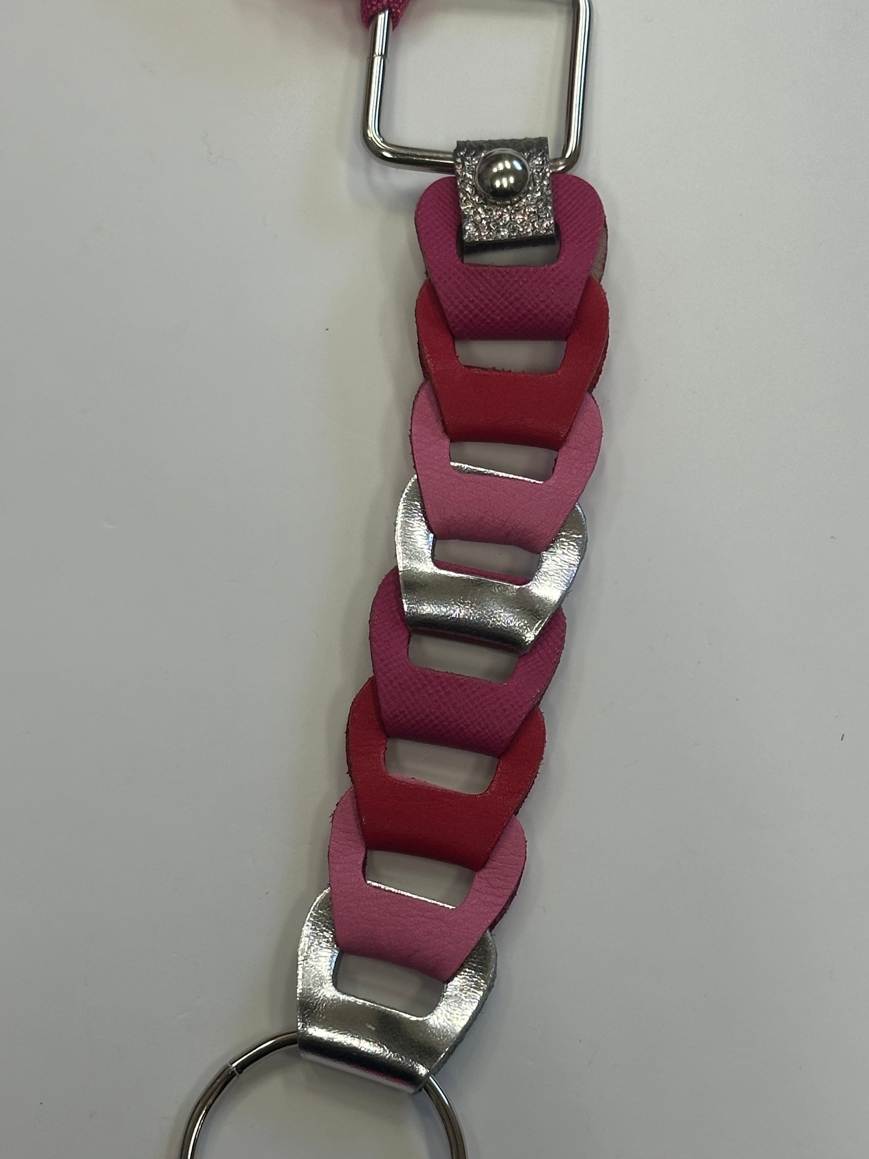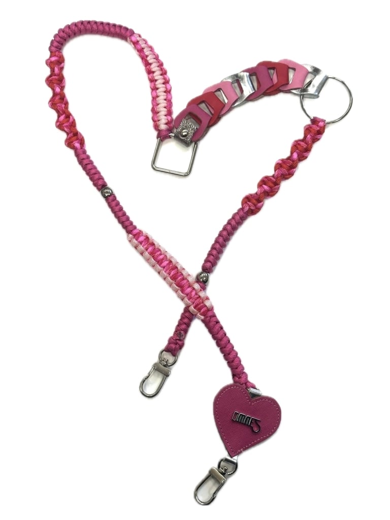 編み上げたパラコードとバッグを作る際のカラフルなレザーの切れ端を使って一点一点ハンドメイドで作られたスペシャルなストラップです。