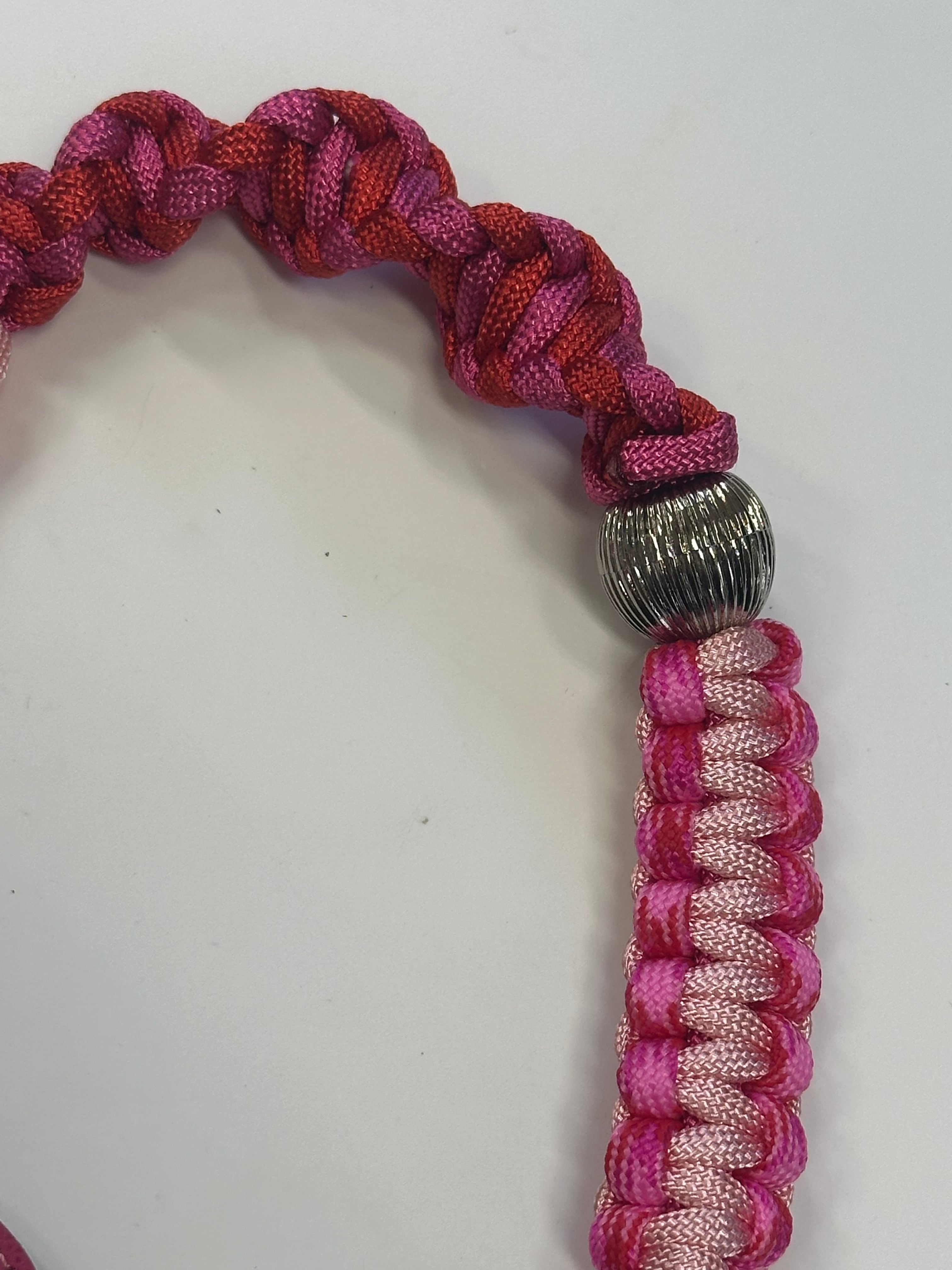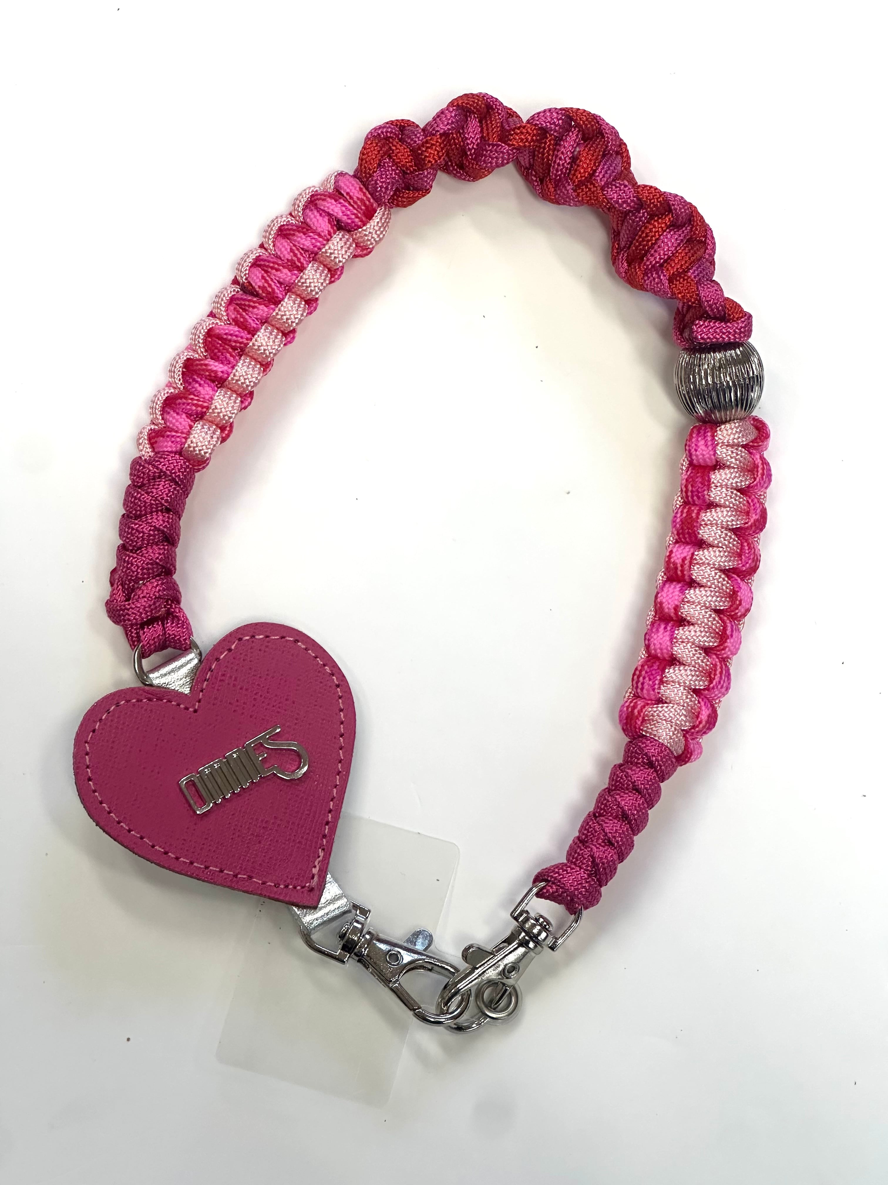 編み上げたパラコードとバッグを作る際のカラフルなレザーの切れ端を使って一点一点ハンドメイドで作られたスペシャルなストラップです。