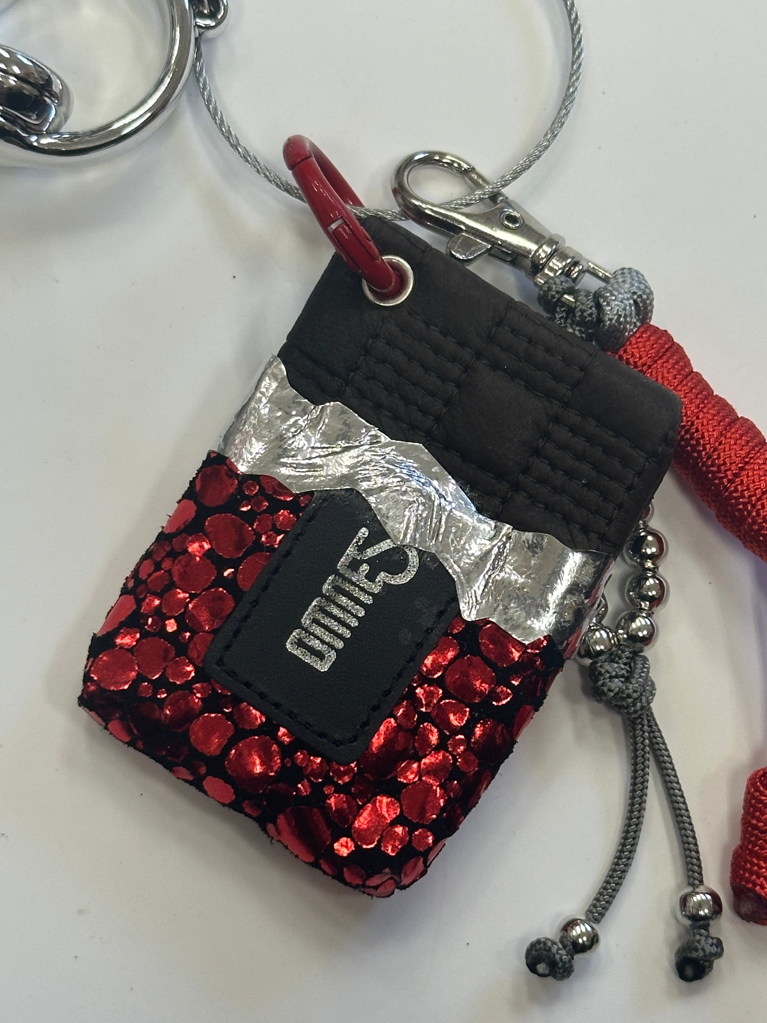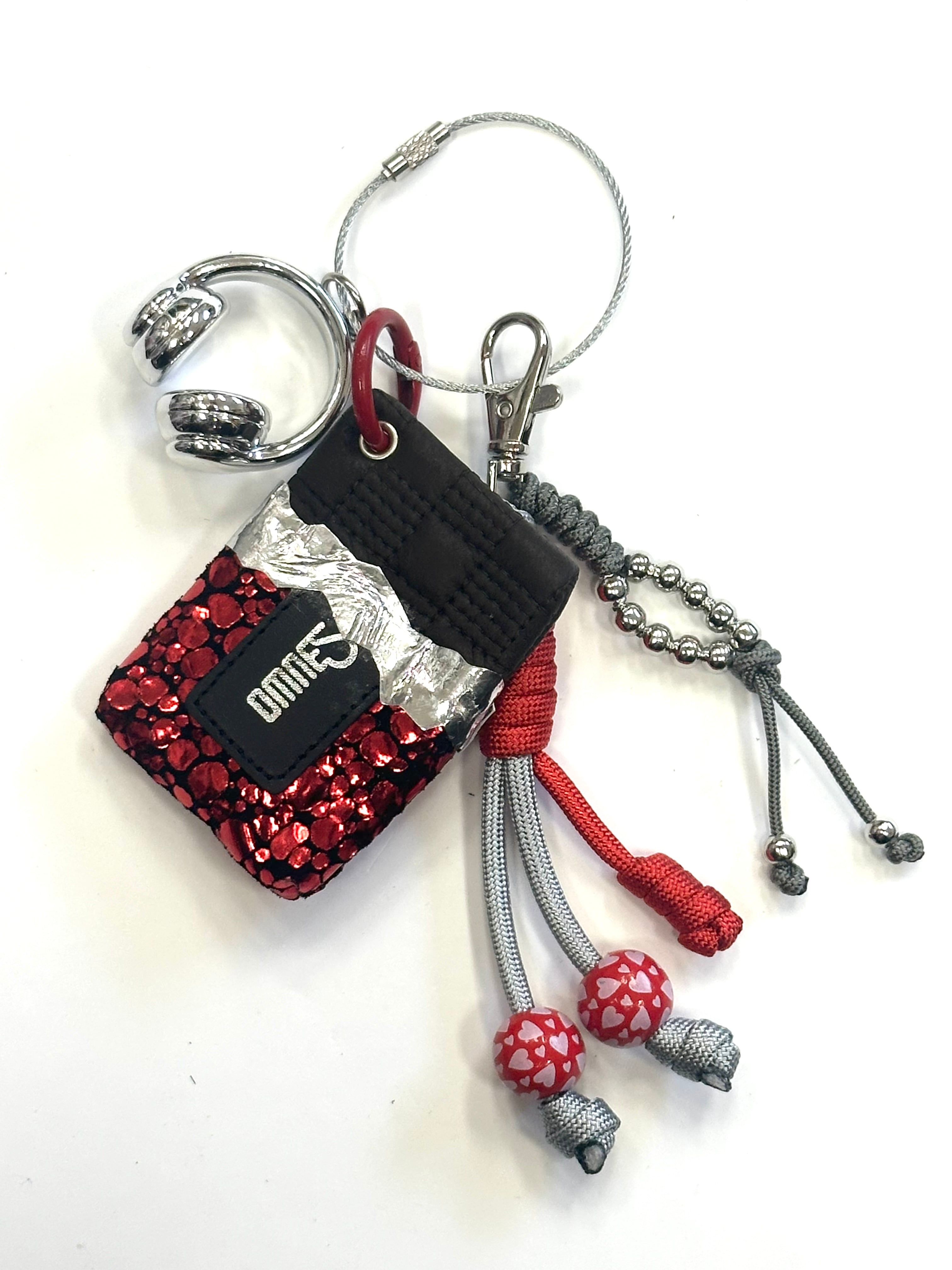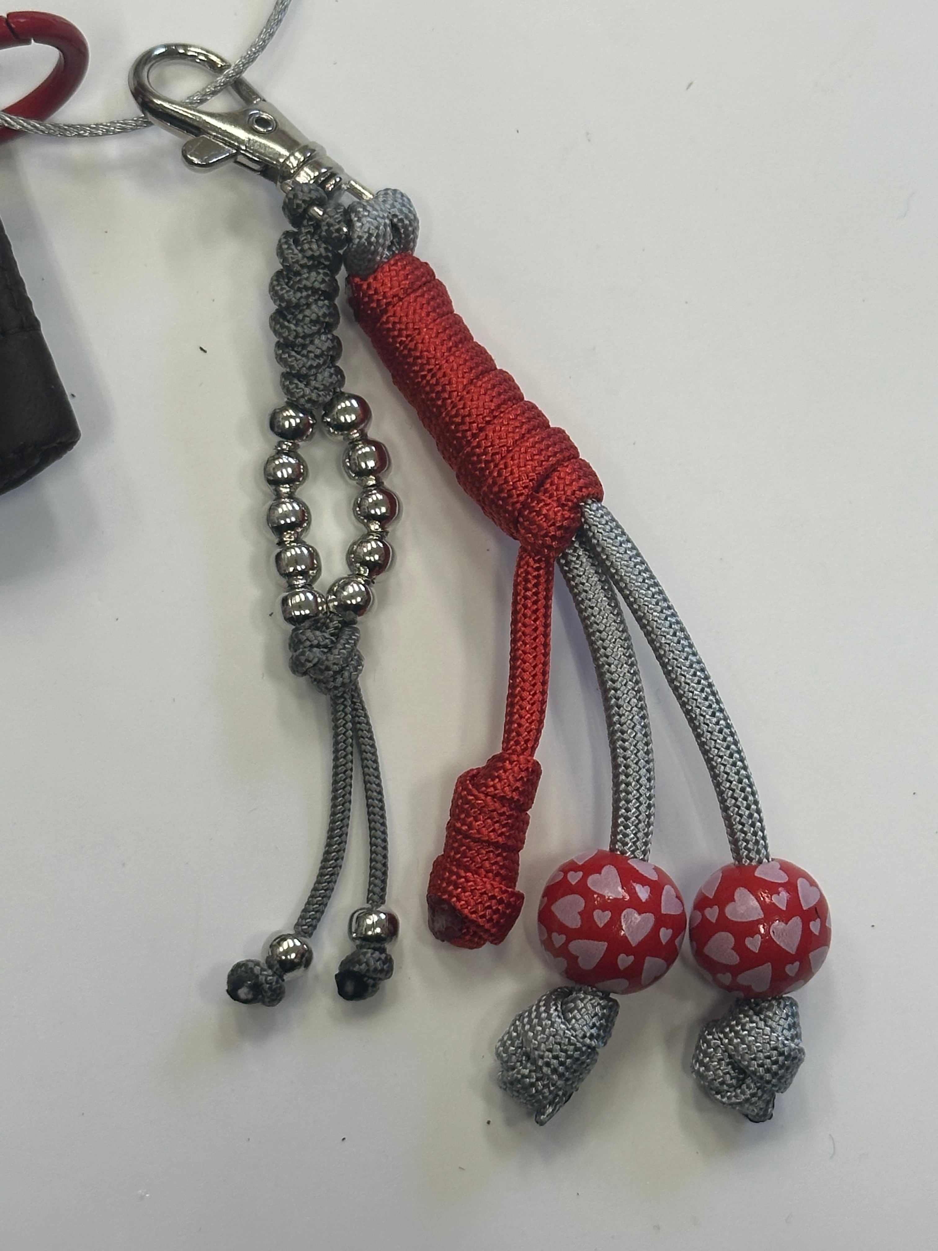 全てオリジナルで制作したアクリルパーツやパラコードのチャーム、レザーパーツを組み合わせたキーリング。