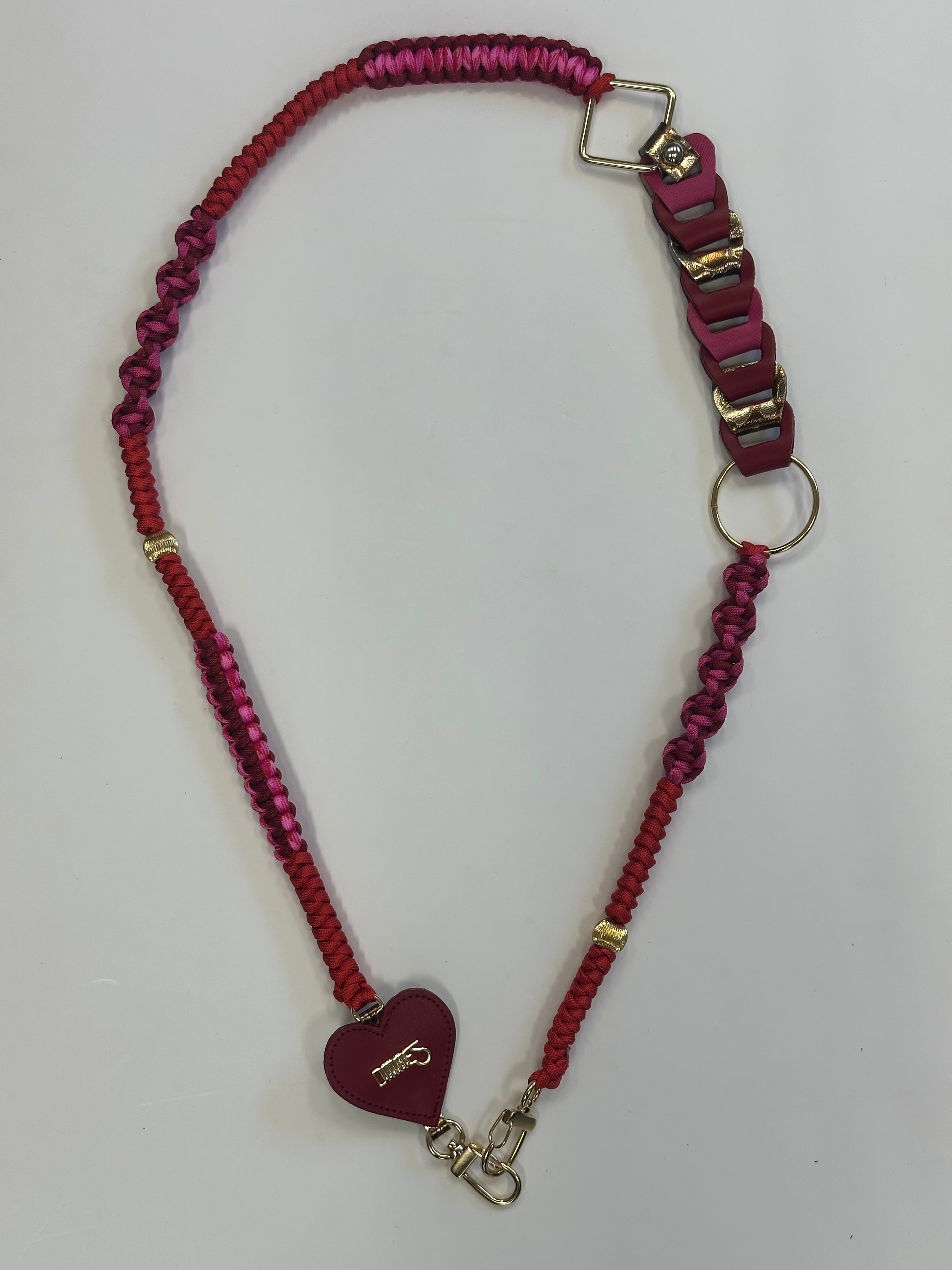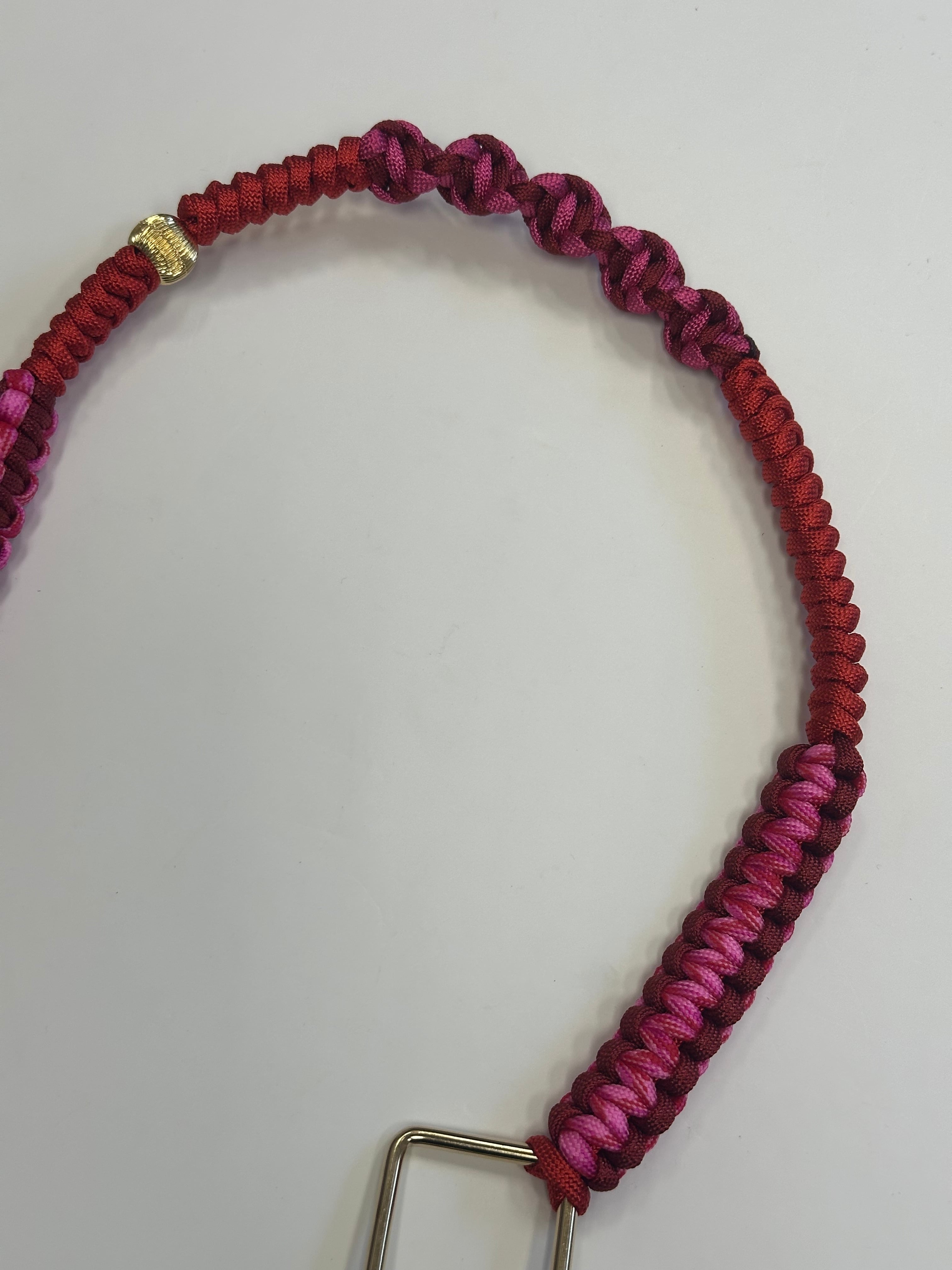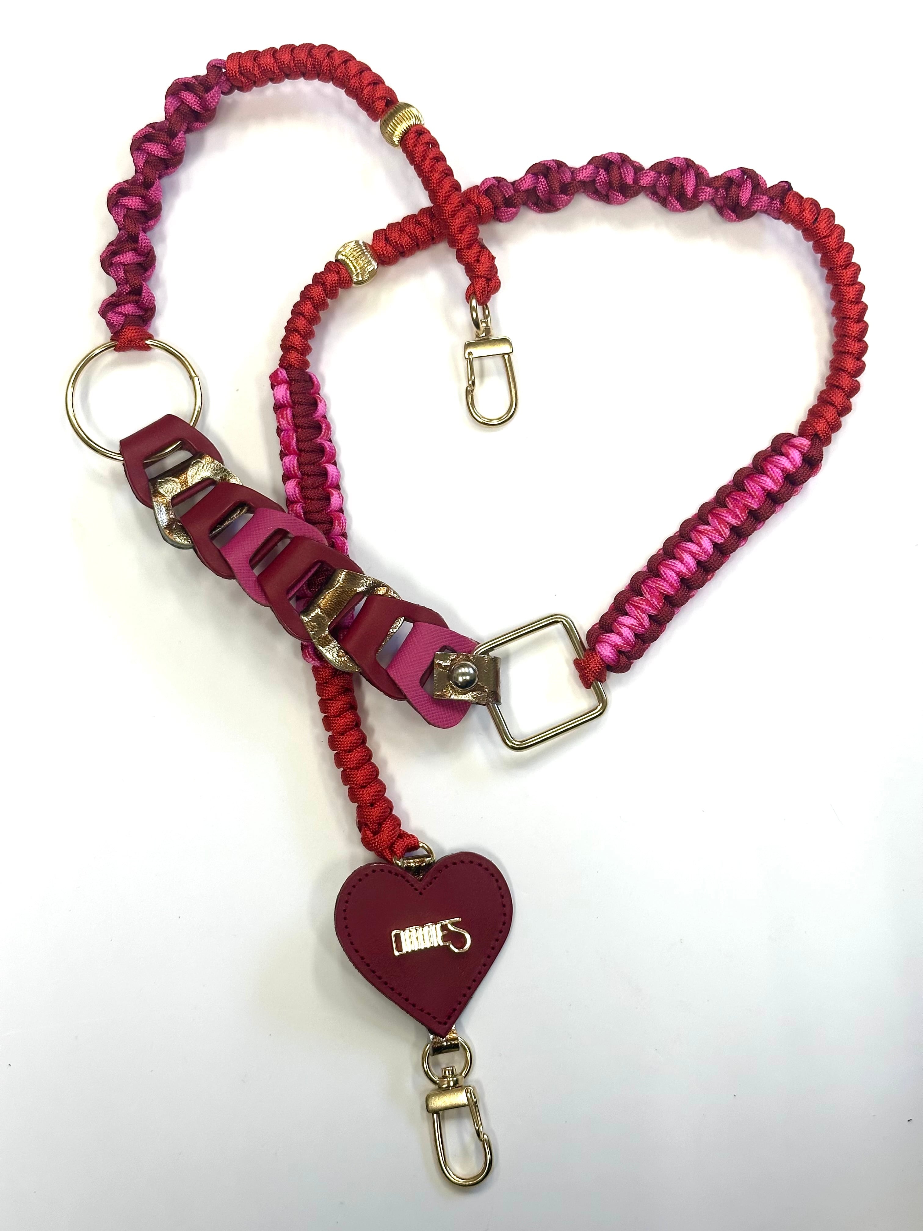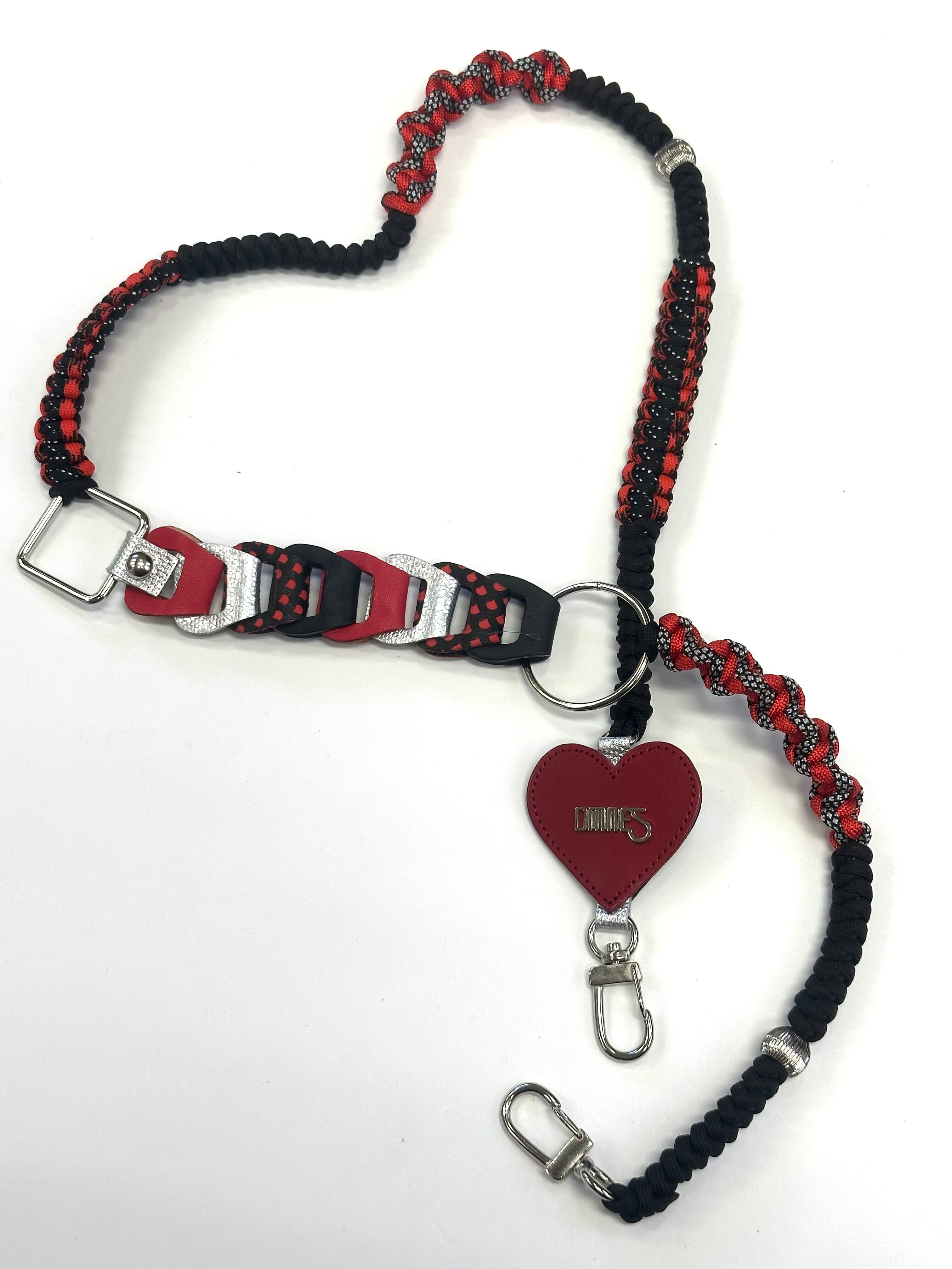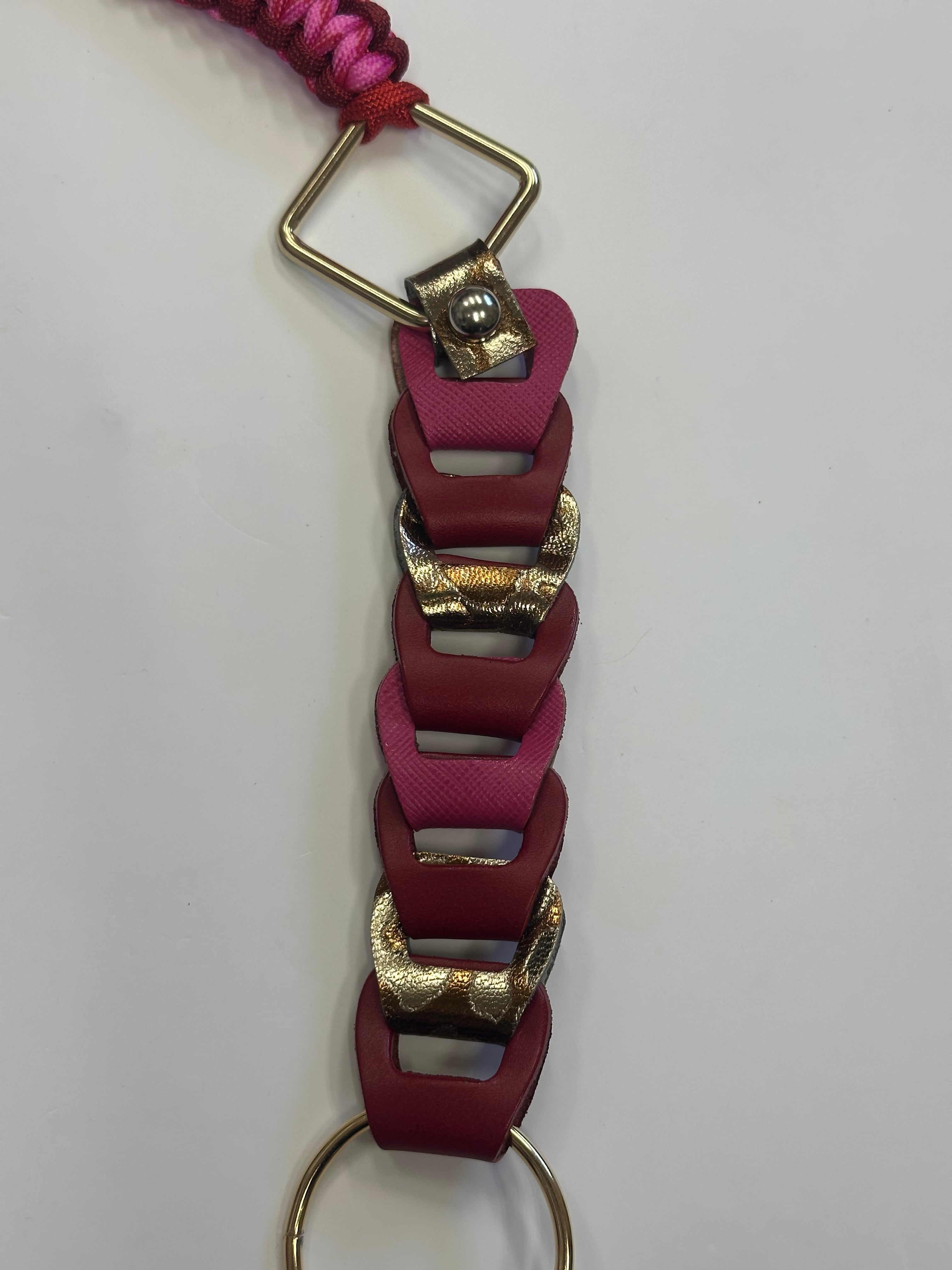 編み上げたパラコードとバッグを作る際のカラフルなレザーの切れ端を使って一点一点ハンドメイドで作られたスペシャルなストラップです。