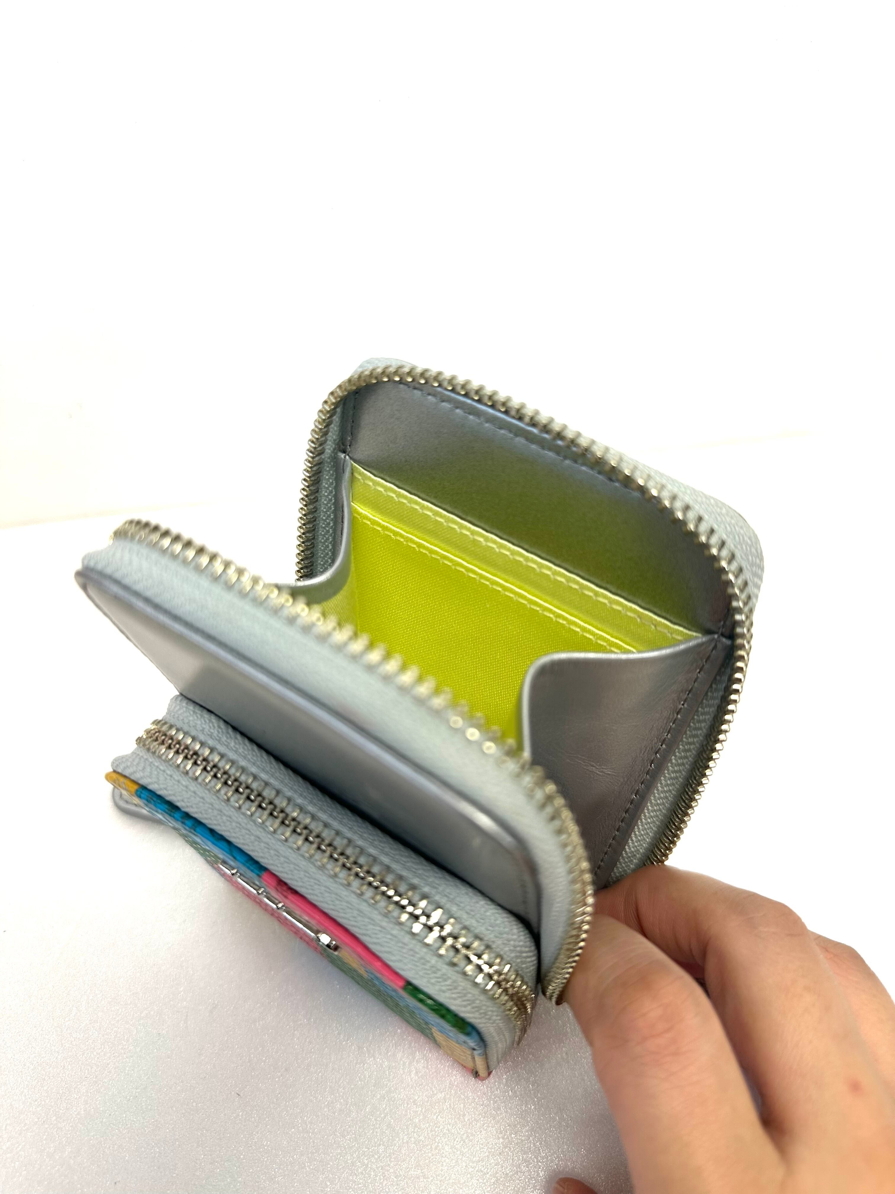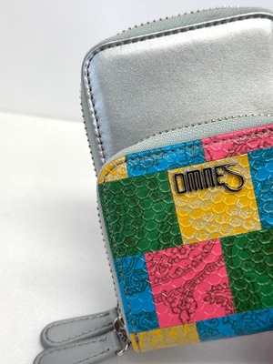 小銭スペース革:鹿革・牛革・豚革・羊革のコラージュ+エナメルフィルム+型押し